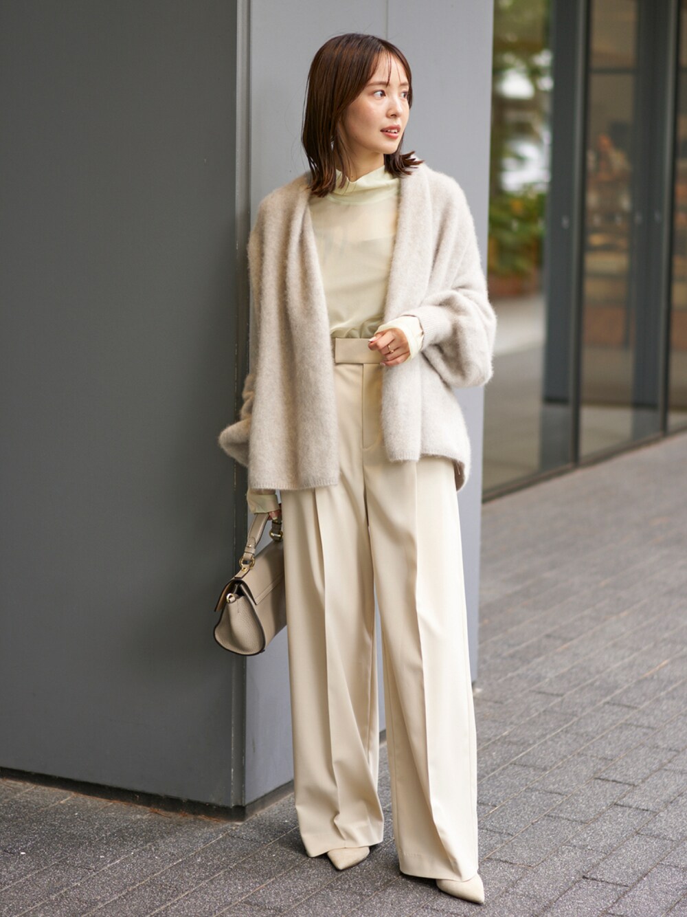 ★毎年人気のファーニットシリーズが入荷!丈を短くアップデートしたカーディガンが登場 【シアースキニーハイネックトップス】 淡いトーンでまとめた、キレイめパンツスタイル。 コーデに彩りをプラスしてくれる、柔らかなグリーンがポイント◎ お仕事にもお出かけにも対応可能な万能コーデの完成です。 ○身長:155cm ○年齢:20代 ○体型:細身(もも周りが気になる) ○普段サイズ:34 公式Instagramも 是非ご覧ください!! →@nb_aruga