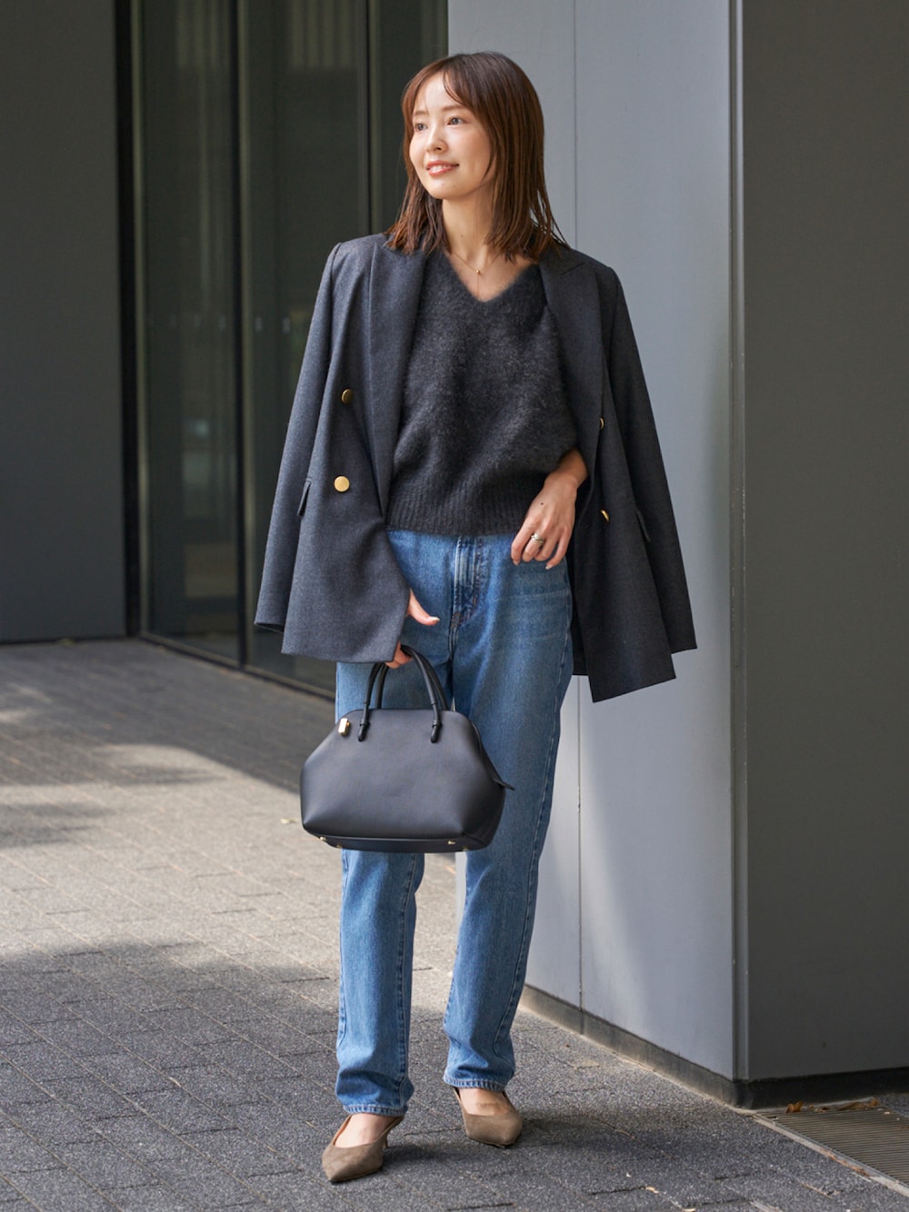 【ファーネックVネックベスト】 今年初めて登場したベストタイプを、少し先に着るイメージでスタイリング。 生地が柔らかいので、上からジャケットも着やすいです◎ デニムを合わせてカジュアルダウンすることで、こなれ感をプラスしました。 足元はヒールにしてラフになりすぎないように。 ○身長:155cm ○年齢:20代 ○体型:細身(もも周りが気になる) ○普段サイズ:34 公式Instagramも 是非ご覧ください!! →@nb_aruga