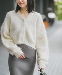 minani.a(NOBLE 本社)のカーディガン/ボレロ「アルパカ混シャギーショートカーデ」を使ったコーディネート