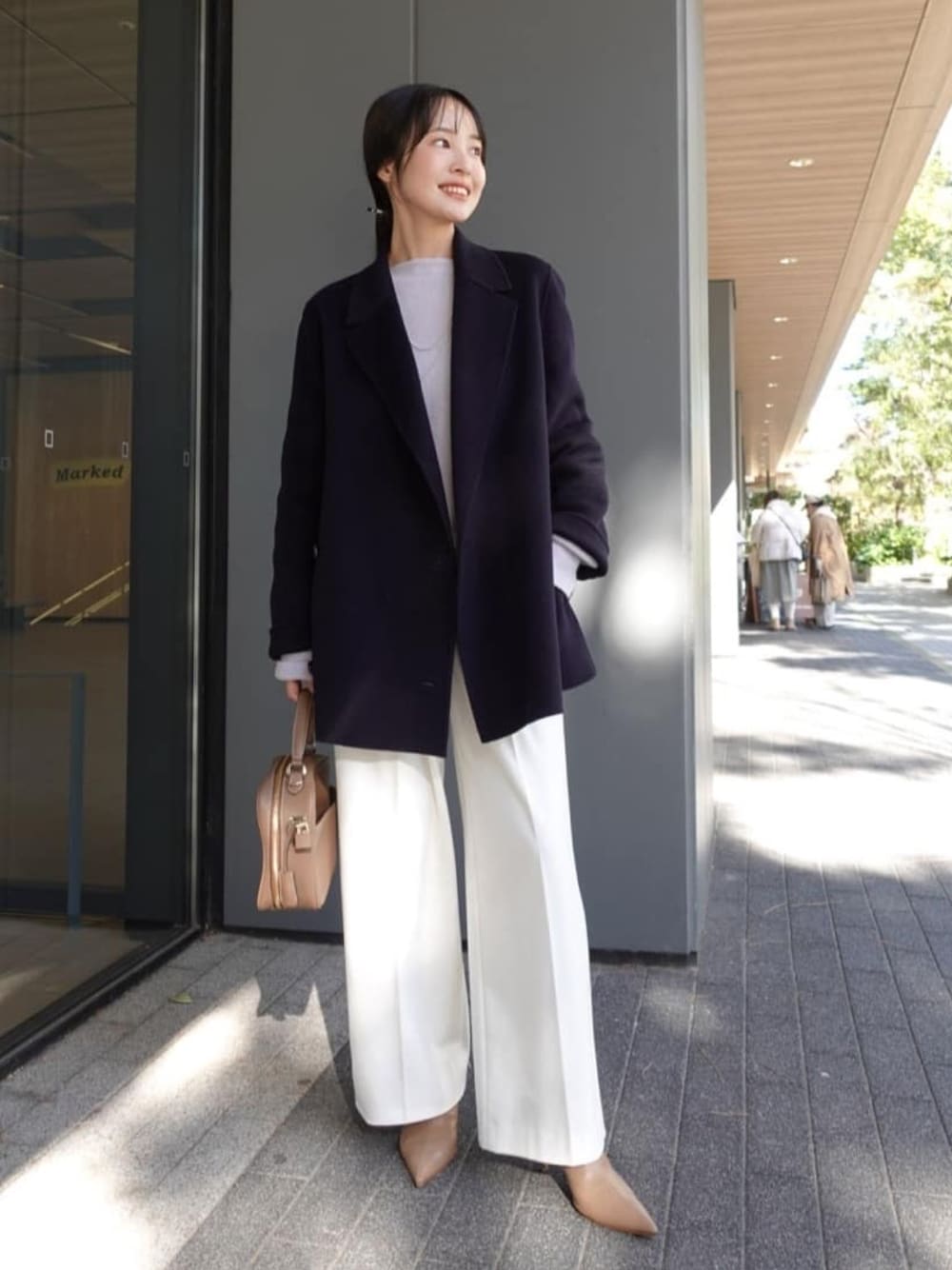 ホワイト×パープルの柔らかなカラーコーデを、ネイビーのアウターで大人顔にシフト。 足元はヌーディカラーでレディにまとめたのがポイントです◎ ○身長:155cm ○年齢:20代 ○体型:細身(もも周りが気になる) ○普段サイズ:34 公式Instagramも 是非ご覧ください!! →@nb_aruga