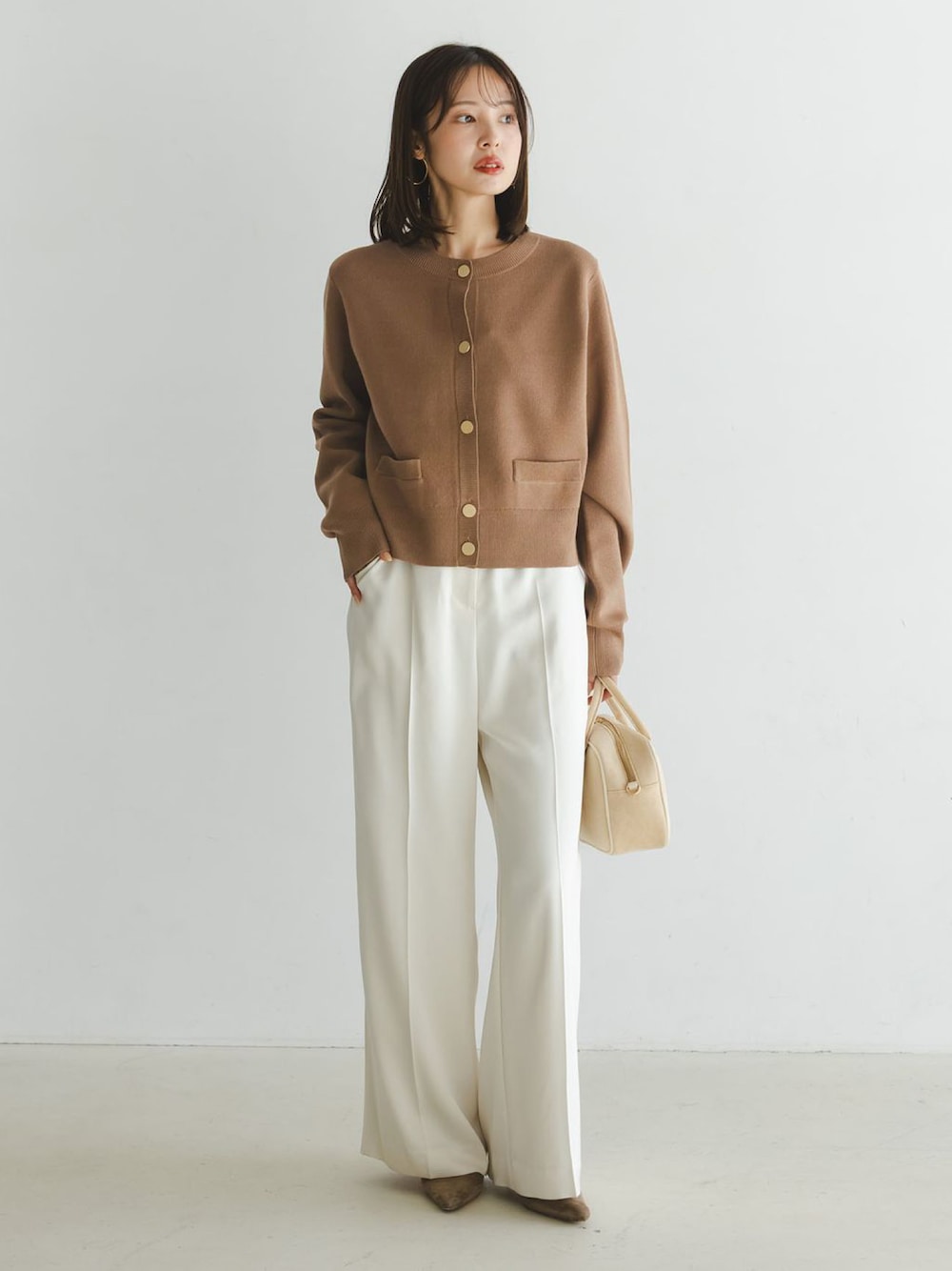 minani.a(NOBLE 本社)のカーディガン/ボレロ「ダブル編みショートカーデ」を使ったコーディネート