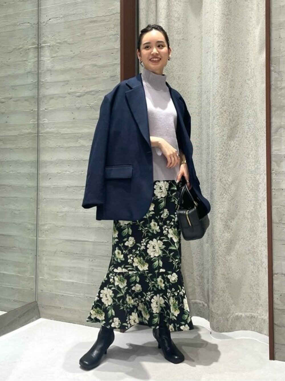 【フラワープリントヘムフレアスカート】 ヴィンテージの花柄が華やかムードを漂わせるオシャレな1着。 普通の花柄に比べて、ヴィンテージライクのデザインの為甘くなりすぎずにスタイリッシュ派の方にもおすすめです。 今季はあえて淡い色のニットとのコーディネートで、抜け感をプラス◎ 冬までの時期にはジャケットなどの軽羽織で防寒頂けます! 160センチで38サイズを着用。 あえて長めの着丈をチョイスしました! ●年齢:20代前半 ●身長:160cm ●体型:普通(二の腕気になる) ●普段サイズ:36サイズ ●着用サイズ:ニット(F)スカート(38)ジャケット(F) ●パーソナルカラー:ブルベ ●個人インスタ→@nb_eguchi
