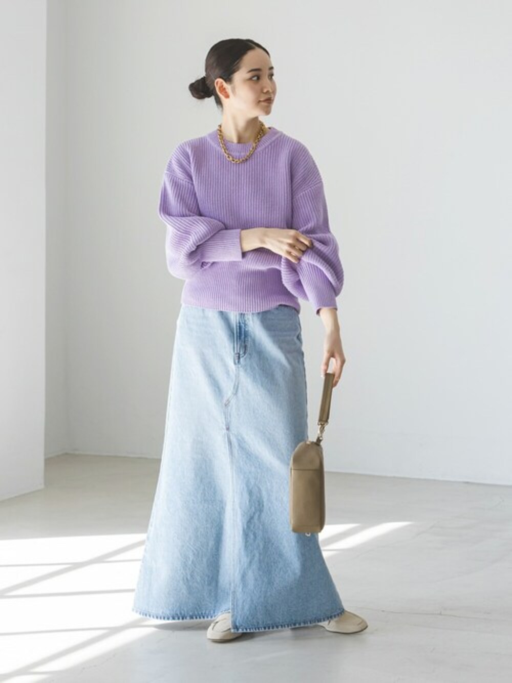 ★11/30より24SSご予約スタート! 【片畦バックオープンニット】 春らしいパープルカラーが目を惹く片畦ニット。 ブリーチされた薄色デニムスカートと合わせてとことん春らしくコーディネート。 ワイドなシルエットが大人っぽく、ちらりと肌が見えるバックスタイルにもドキリ♡ バッグとシューズはベージュ系で合わせて統一感をプラス。 ※スカート・シューズは今後入荷予定の24SS新作商品です。 ●年齢:20代前半 ●身長:160cm ●体型:普通(二の腕気になる) ●普段サイズ:36サイズ ●パーソナルカラー:ブルベ ●個人インスタ→@nb_eguchi