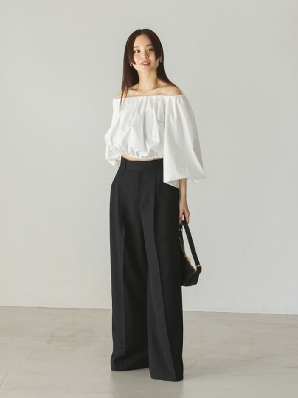 【タイプライターオフショルバルーンブラウス】 ふんわりシルエットで大人可愛いをメイクするブラウス。 マニッシュなスラックスパンツと合わせて甘さバランスを整えて。 デコルテラインとウェストをチラ見せするヘルシーな肌見せは旬なスタイリング。 ●年齢:20代前半 ●身長:160cm ●体型:普通(二の腕気になる) ●普段サイズ:36サイズ ●パーソナルカラー:ブルベ ●個人インスタ→@nb_eguchi