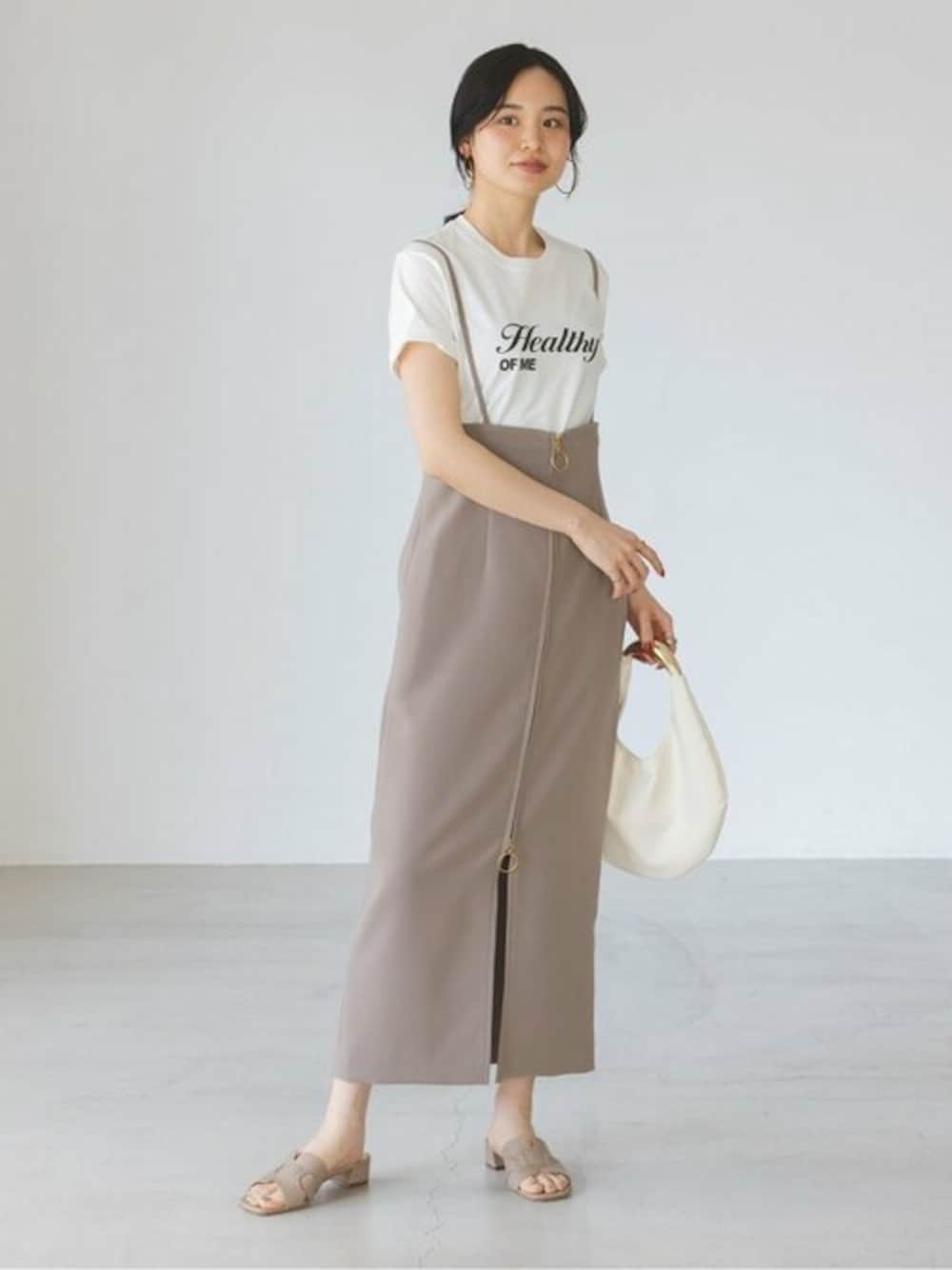 RITA 別注ロゴT 急激に暑くなり始めたこの頃から、ワードローブに欠かすことのできないTシャツ! このロゴTは派手すぎず、でもアクセントになる丁度いいバランス感が大人っぽく着こなせるのでお気に入り。 袖を少しロールアップしてミニマルに着こなしてみるのも可愛いです。 タイトスカートと合わせたカジュアル×フェミニンな休日スタイリング。 ※スカート詳細 商品名:ショルダーサロペットフープジップスカート 商品番号:24060240506020 価格:¥17,000 +TAX 6月入荷商品 ●年齢:20代前半 ●身長:160cm ●体型:普通(二の腕気になる) ●普段サイズ:36サイズ ●パーソナルカラー:ブルベ ●個人インスタ→@nb_eguchi