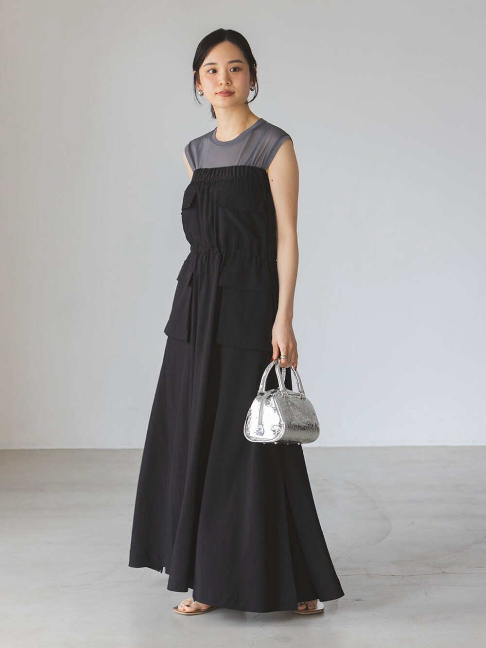 カーゴディテール2wayワンピース ワークテイストが女性らしく落とし込まれたワンピース。 ウエストに入っているドローコードを絞ることでメリハリがつきます◎。 絞らずに着用すると大きく裾に向かって広がるAラインに。 インナーにはシアーカットソーを合わせて、涼し気な夏のレイヤードスタイルに。 ●年齢:20代前半 ●身長:160cm ●体型:普通(二の腕気になる) ●普段サイズ:36サイズ ●パーソナルカラー:ブルベ ●個人インスタ→@nb_eguchi