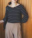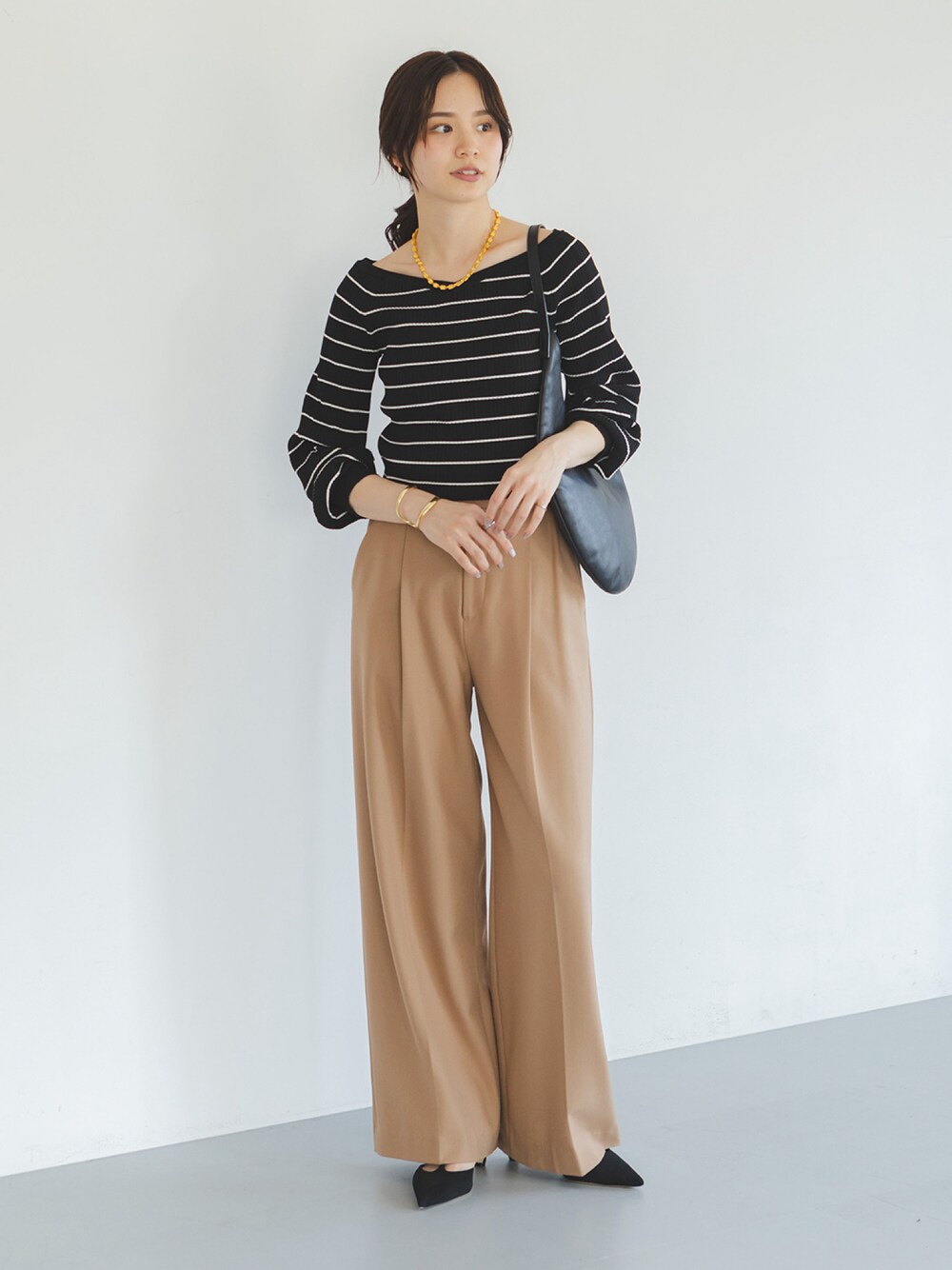 ワイドVネックプルオーバー 女性らしく着られるボーダー柄♡ デコルテがきれいに見えるVネックとやや広がったお袖が可愛い一押しニットです。 今季気になるキャメルカラーのパンチ¥つに合わせて秋のムードを纏ったキレイめカジュアルコーデに。 ●年齢:20代前半 ●身長:160cm ●体型:普通(二の腕気になる) ●普段サイズ:36サイズ ●パーソナルカラー:ブルベ ●個人インスタ→@nb_eguchi
