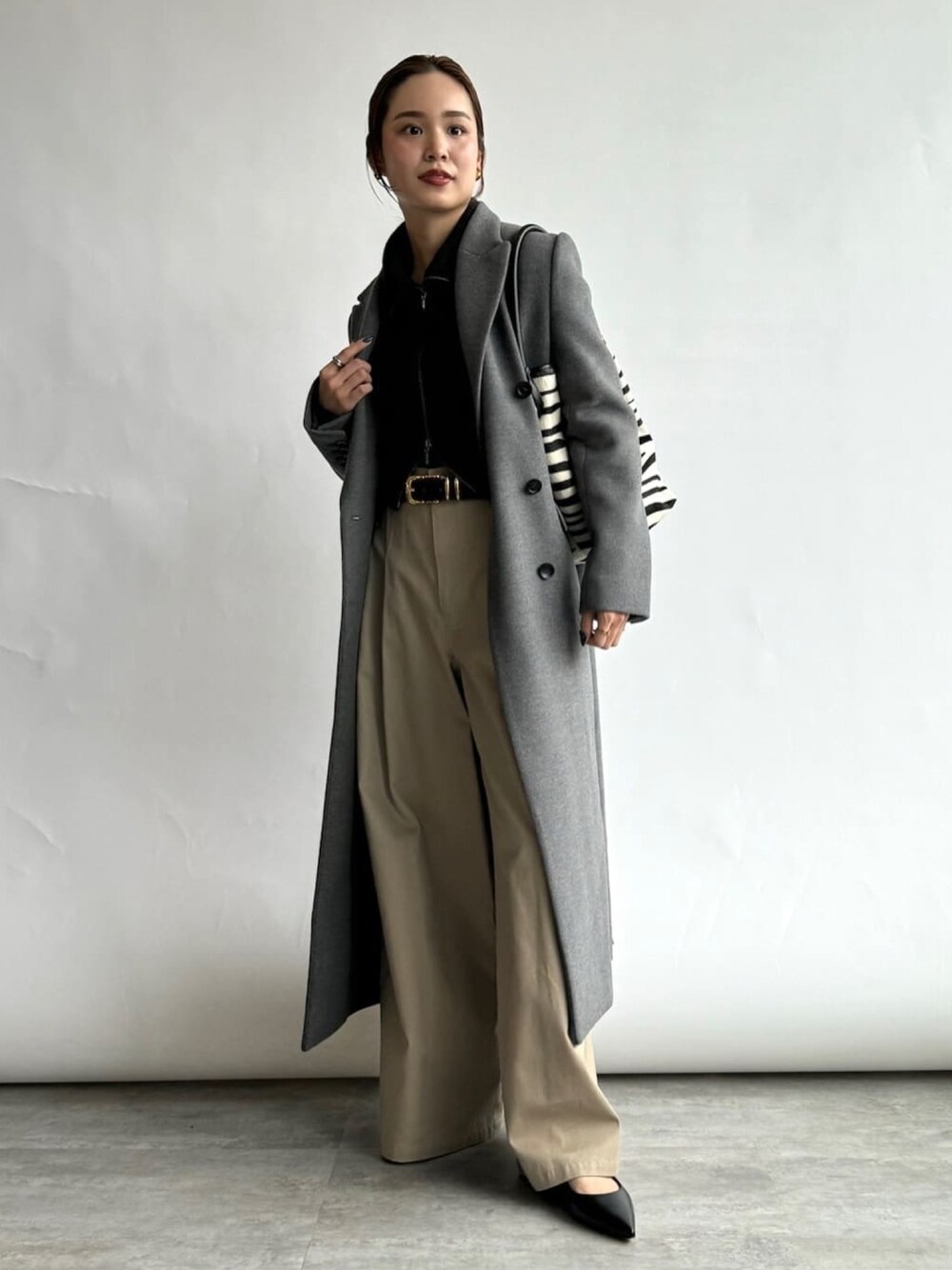 ayano(NOBLE 本社)のチェスターコート「メルトンロングチェスターコート」を使ったコーディネート