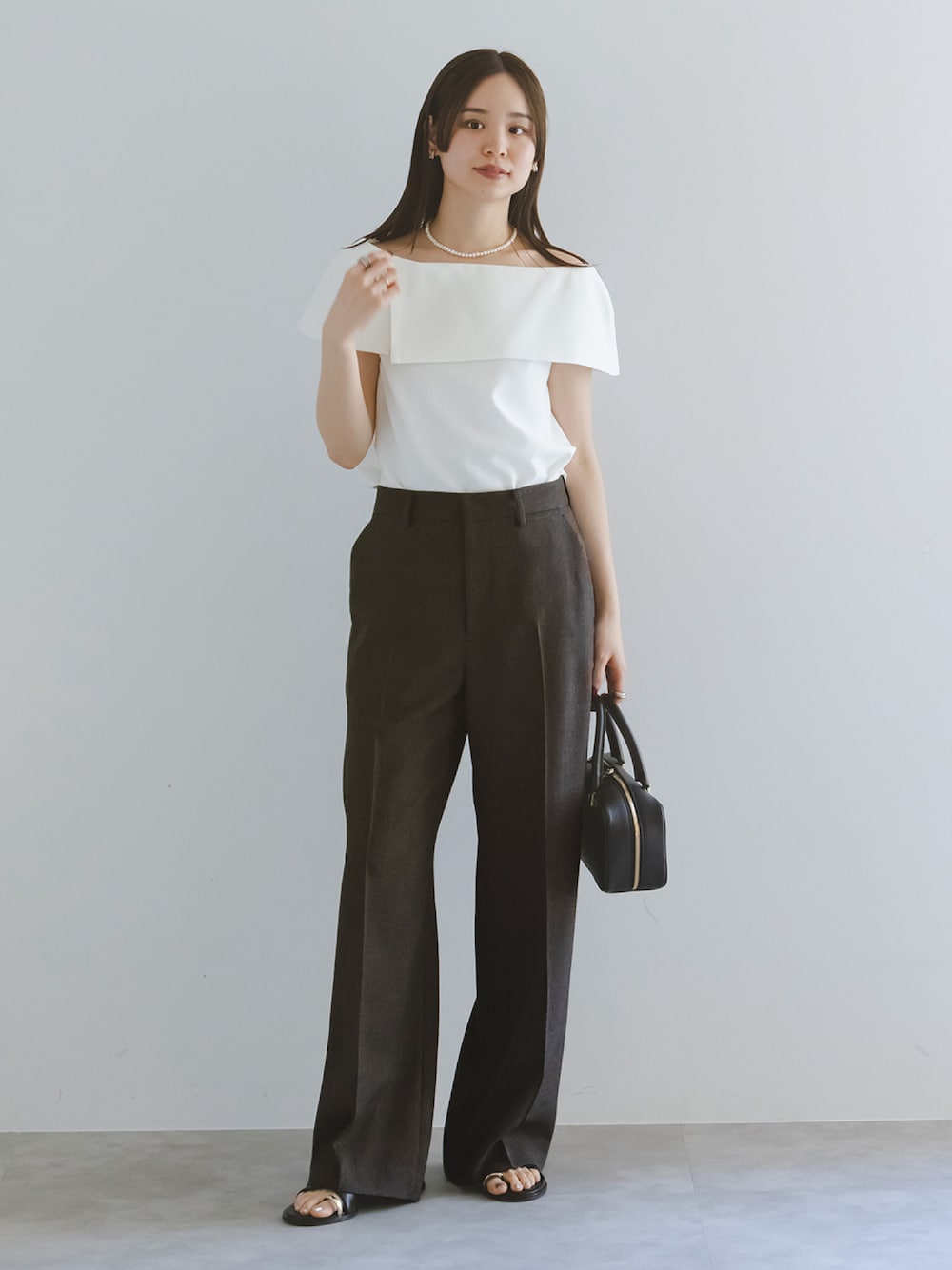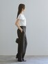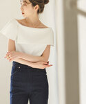 男前なスラックスに程よく女性らしいケープブラウスがちょうどいい。 甘すぎないのに女っぽさのあるブラウスなのでオンオフ兼用で使いたくなるほど! 再入荷し、大人気となっています◎