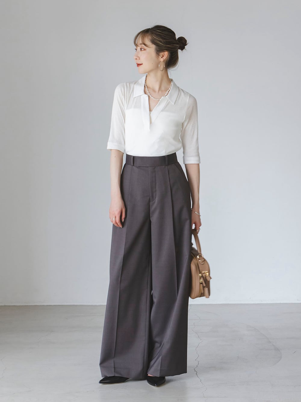 【NINETY PERCENT】リブオープンカラーショートスリーブ ポロデザインのニットは着るだけでトレンドムード溢れる1枚。 ソフトタッチで肌当たり滑らかなのも嬉しいポイントです◎ スラックスで合わせてスタイリッシュに仕上げました! デコラティブなアクセサリーでアクセントをプラス。 ※シューズ詳細 商品名:【BRENTELLA】Tストラップヒール 商品番号:24093250001730 価格:¥62,700税込 10月中旬入荷予定 ●年齢: 20代前半 ●身長: 164cm ●普段サイズ: 36(S)または38(M)サイズ ●パーソナルカラー: ブルベ ●骨格: ウェーブ いつもSNAPを見てくださりありがとうございます☺︎ NOBLE公式スタッフのインスタグラムも始めたので、 ぜひフォローお願いいたします♡ アカウント→@nb_wajima