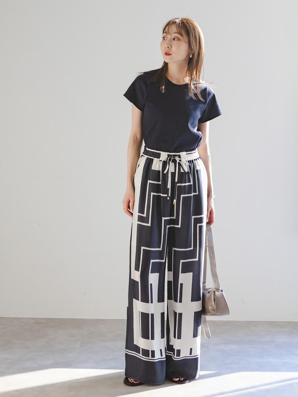 ネイビーのTシャツは、同色のスカーフ柄パンツでリゾーティに決めて。 トップスがフィットしているので、ボトムに緩さを出すと好バランスにまとまります。 ●年齢: 20代 ●身長: 164cm ●普段サイズ: 36(S)または38(M)サイズ ●パーソナルカラー: ブルベ ●骨格: ウェーブ いつもSNAPを見てくださりありがとうございます☺︎ NOBLE公式スタッフのインスタグラムも始めたので、 ぜひフォローお願いいたします♡ アカウント→@nb_wajima