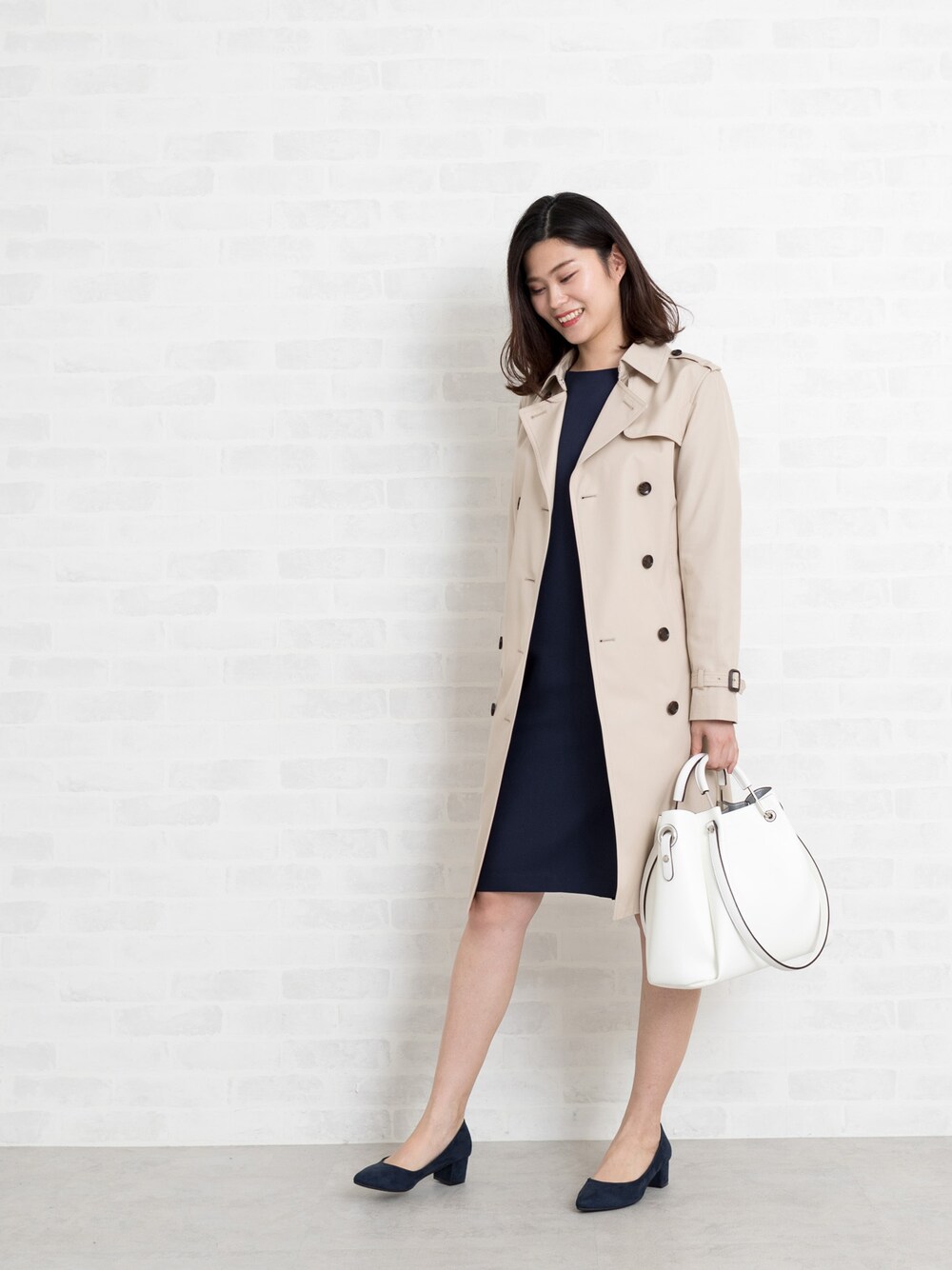 きちんと通勤スタイルには、ベージュのトレンチが◎