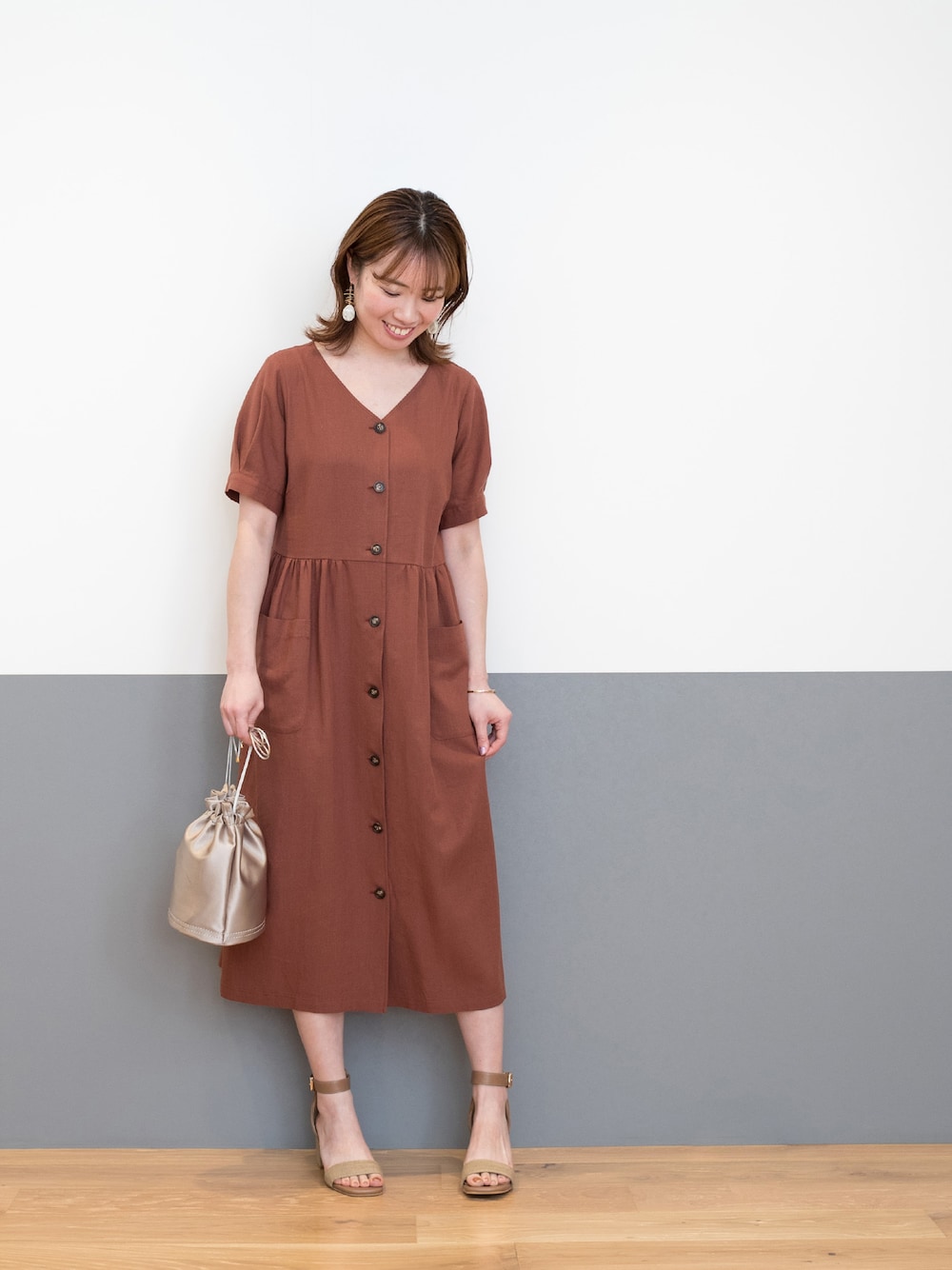 NBB STAFF17のワンピース「レーヨンリネンフロントボタンワンピース」を使ったコーディネート