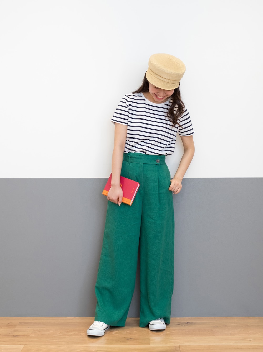 リネンのナチュラルさを残し、軽やかでラフにこなせるグリーンのパンツは、ボーダーTをあわせてマリンの空気を纏った新鮮コーデに。