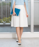 通勤コーデに欠かせないアンサンブルニット。 春らしいブルーのニットに、 ホワイトのスカートを合わせて清楚にまとめます。