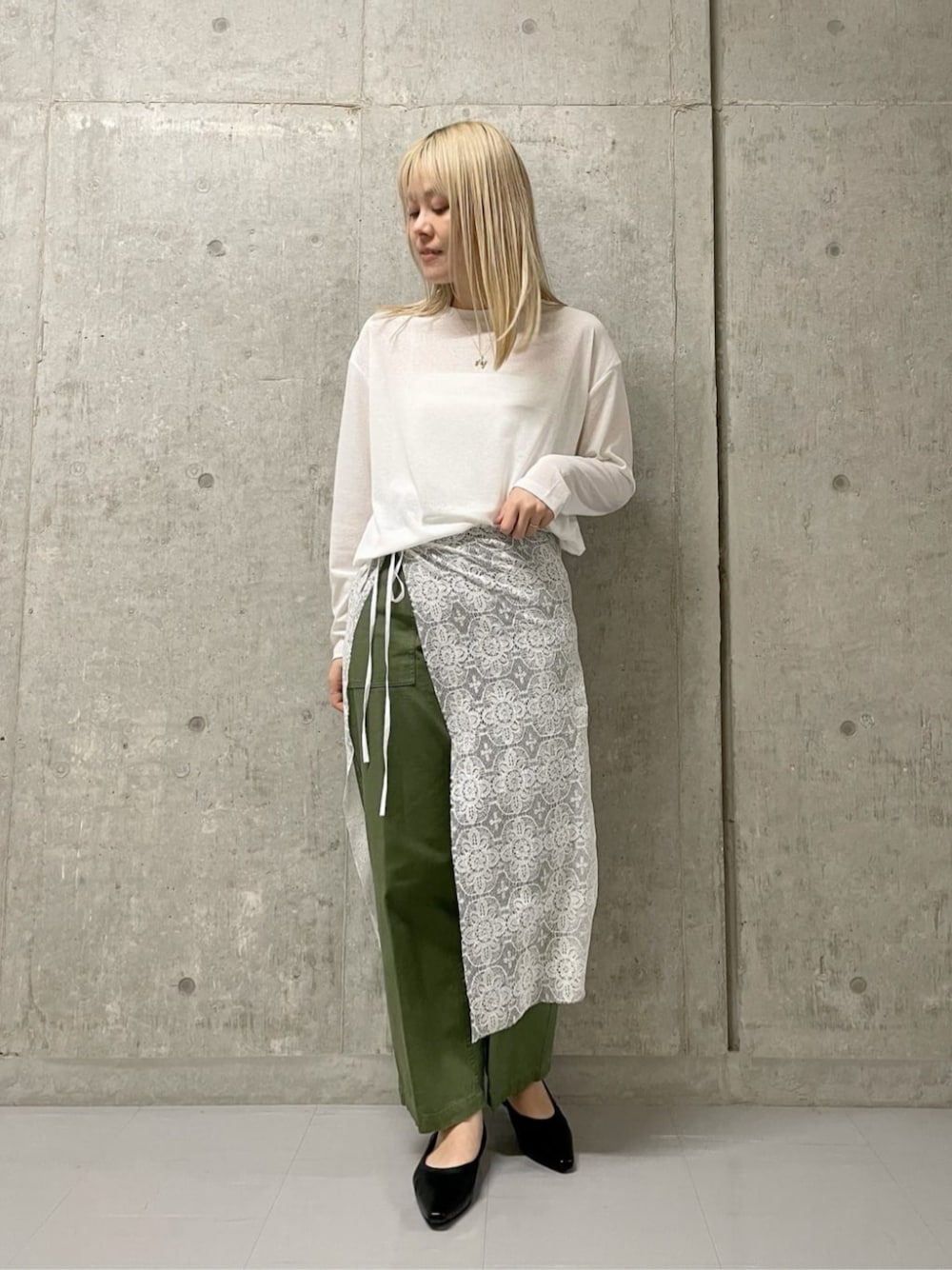 パンツやショーパンに合わせると今年らしいコーデを楽しめるレースタブリエを主役にしたコーデです!! 今期Nナチュラルビューティーベーシックで注目のレースを カーキのパンツでややカジュアルにスタイリングしました☺︎ トップスは透けすぎないシアー素材。 ゆるっとしたシルエットは 身体のラインを拾いすぎず着用できます!