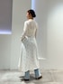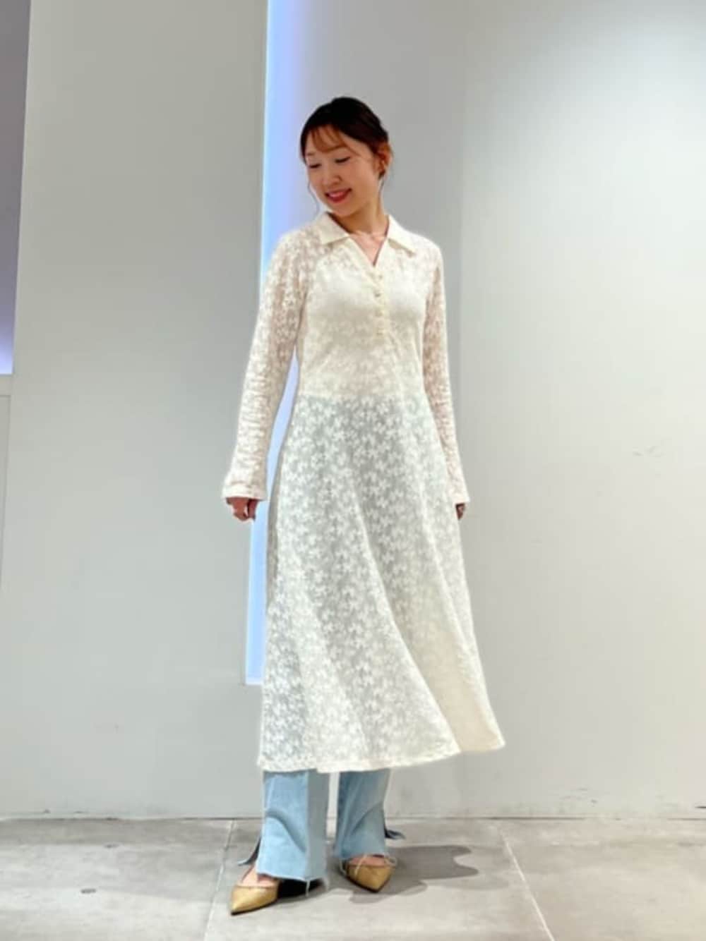 上品なレース素材が目を惹く、大人フェミニンなワンピース🌿 顔まわりをすっきり見せてくれるスキッパーデザインに、さりげないゴールド釦がアクセント。 一枚で華やかさがありつつ、甘すぎずきれいめに着られるのがポイントです。 キャミ型ペチコート付きで安心感もあり、デイリーからお出かけまで幅広く活躍◎ デニムをレイヤードしたスタイリングで、こなれたカジュアルダウンもおすすめです✨ ------------------------------- 【普段サイズ】 ・トップス : S〜M ・ボトムス : S ・ワンピース: S ・シューズ : 23.5 / M 【着用サイズ】 ・デニム : S ・ワンピース: PS ------------------------------