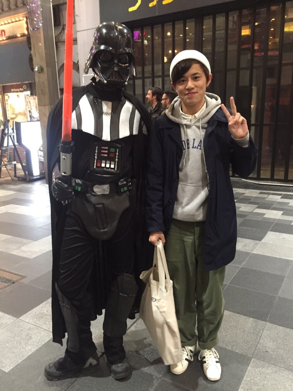 昨日はありがとうございました! なんとか最下位は免れました😎😎 今日は一時間ちょいの出勤のためにお店まで来ました。。。 いいことないなぁーと思っていた帰り道! ダースベーダーに遭遇👀 写真とってもらいました!! いい思い出になりました😚😊