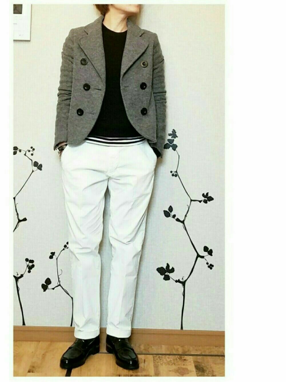 これ実はメンズパンツ。 ウエスト以外はパーフェクトだったので 色違いのカーキ色も買いました。 ちなみに、 商品名はクロップドだけど、 私が履くとフルレングスです。(;´∀`)