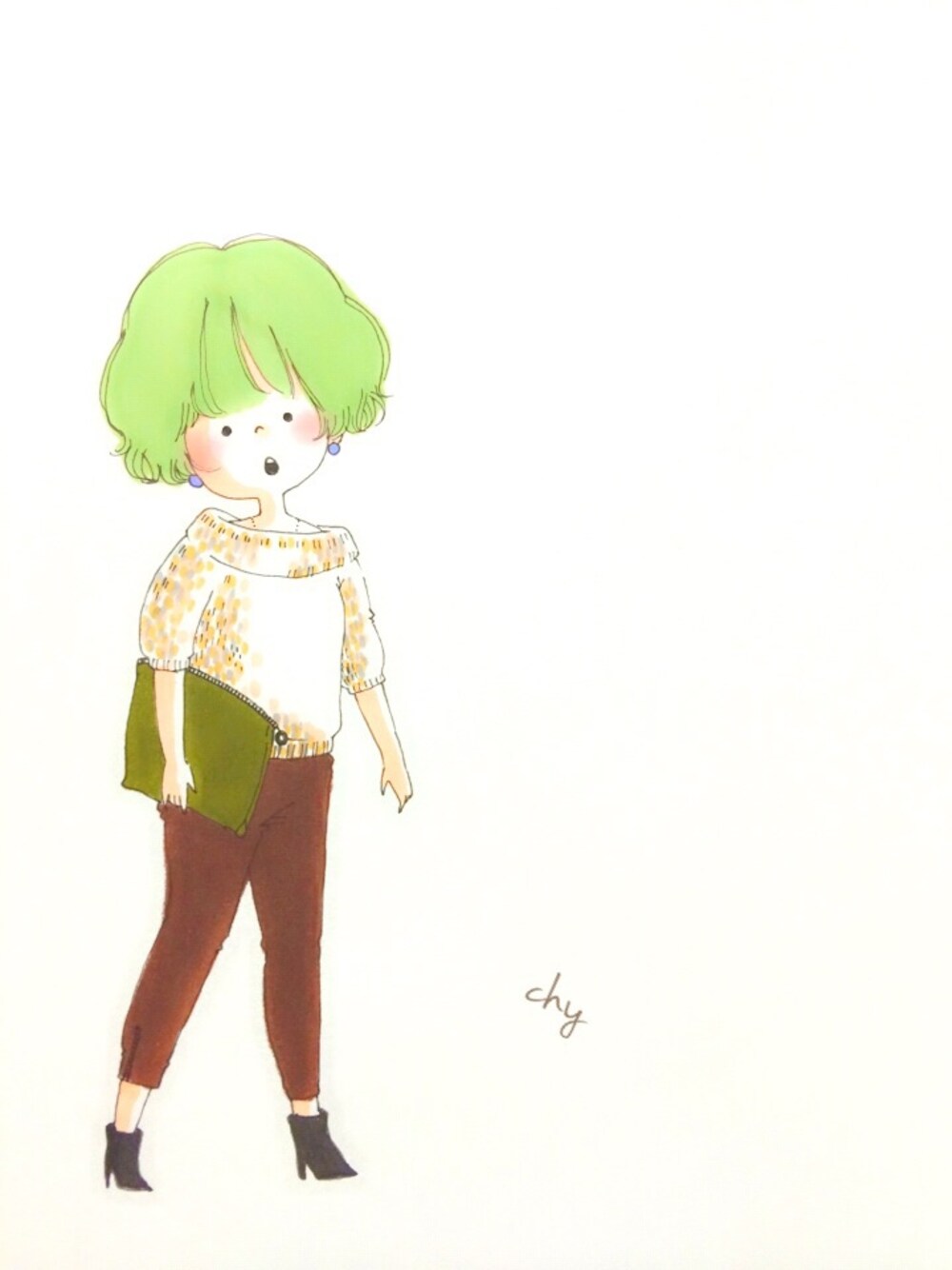 着たいお洋服をイラストにしています♡* 薄手のたっぷりしたニット素材の半袖トップスに赤茶のボトムスとブーティを。 クラッチバッグはカーキで全体的に秋色をイメージしました! まだ8月始まったばかりですが、晩夏物に目が行きます( ´˂˃` ) ♡ 薄手のニット物で半袖の物など可愛い物も店頭に並んでいてまだ実際着るには暑いだろうけど…かわいいなぁと思います⑅⃝♡⃝♪ ここのところ夜は涼しいので秋を感じてしまうのか秋物が早く着たい!と思ってしまう今日この頃。