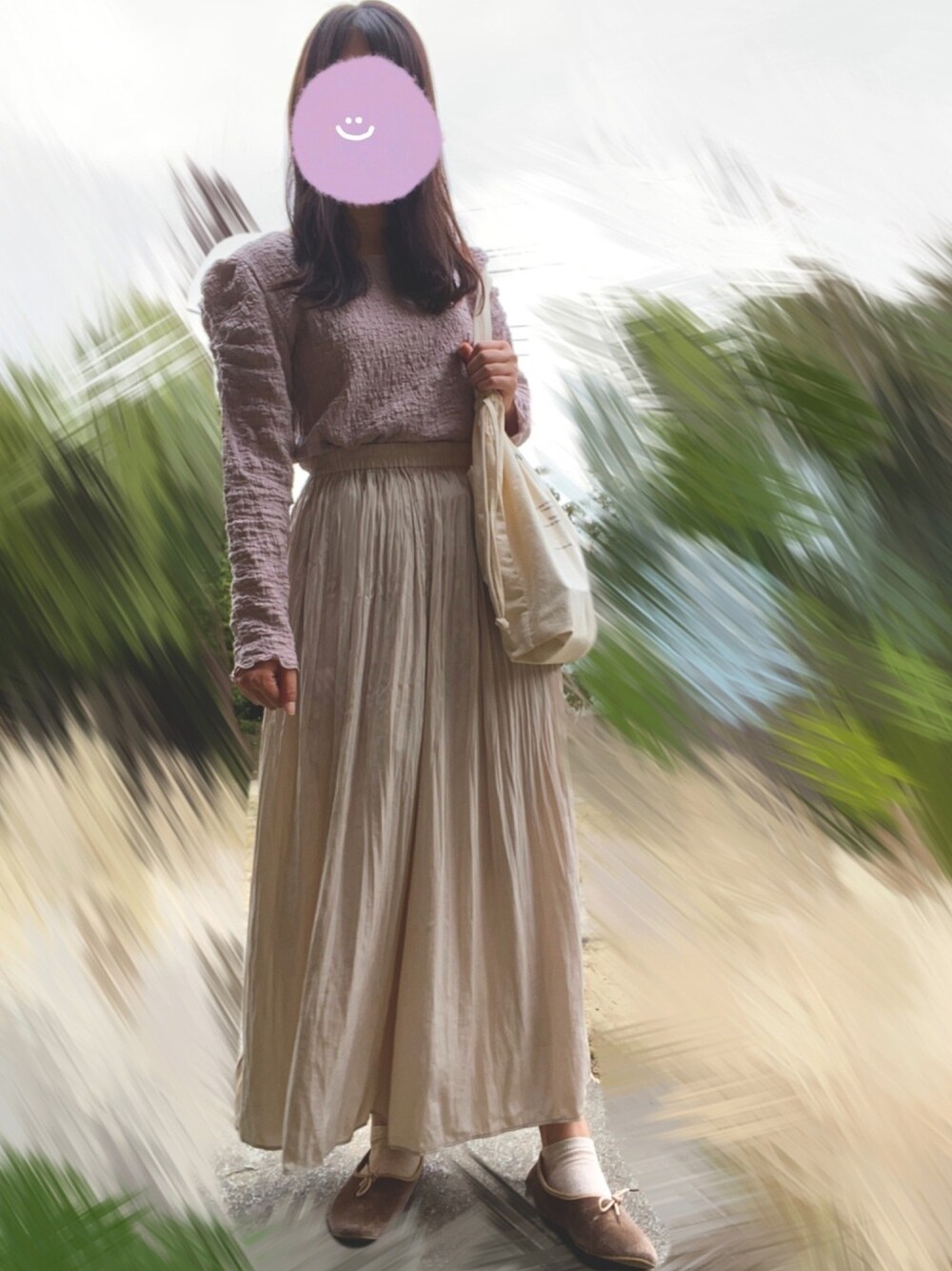 このスカート大活躍のこの頃𓈒 𓂂𓏸 トップスは色味が可愛すぎて、即購入したapresjourの服👗 素材がクシュクシュで秋にピッタリ! そして、私みたいに腕の細さに自信がなくても、トレンドの肩ボリュームになってるから、肩幅を気にせず着れる︎︎☺︎ だんだん秋冬に近づいてきて、ニットとか着るのが楽しみ( ♡ )