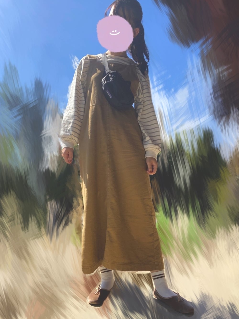 ぽこのワンピース「リネンブレンドジャンパースカート」を使ったコーディネート