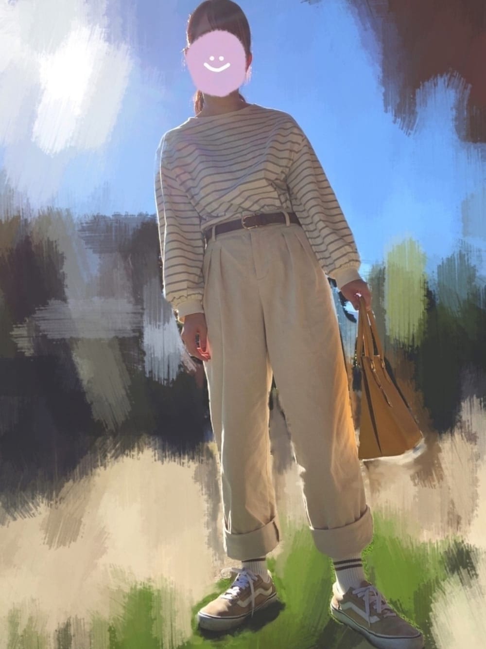 ぽこのTシャツ/カットソー「ボリューム袖ボーダーTee」を使ったコーディネート