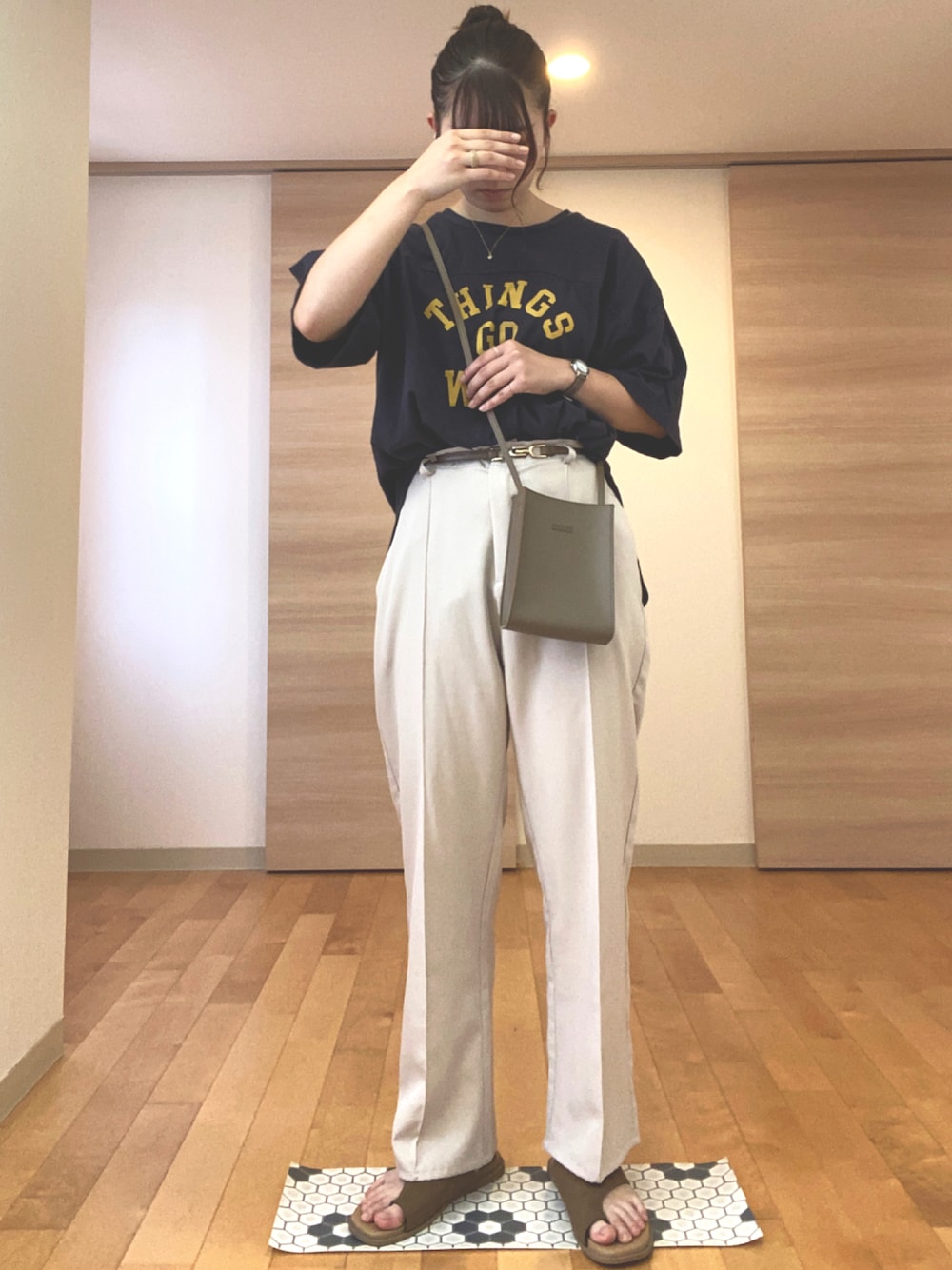 ぽこのスラックス「センタープリーツカラースラックス」を使ったコーディネート