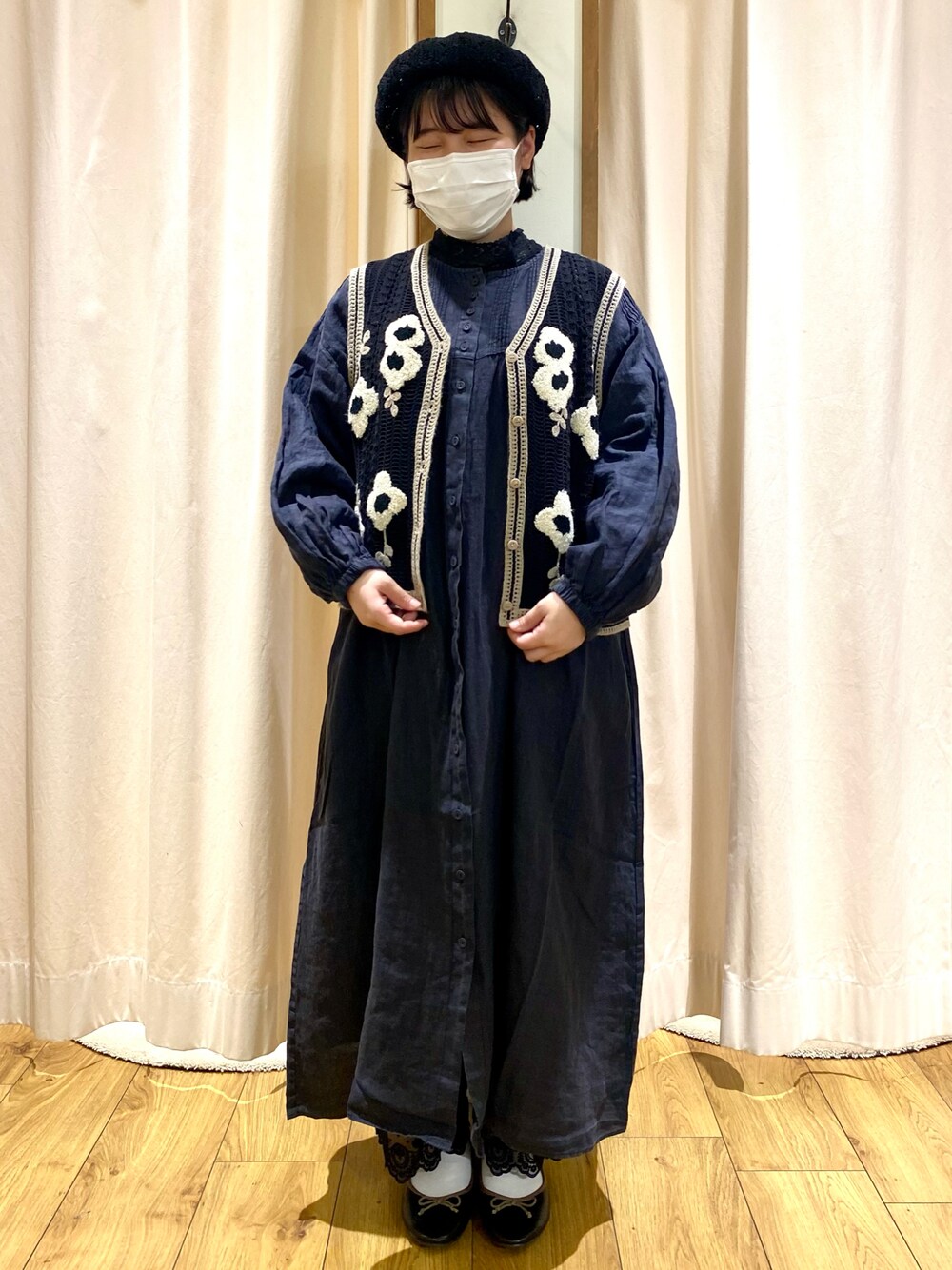 おすずのハンチング/ベレー帽「透かし編みベレー」を使ったコーディネート