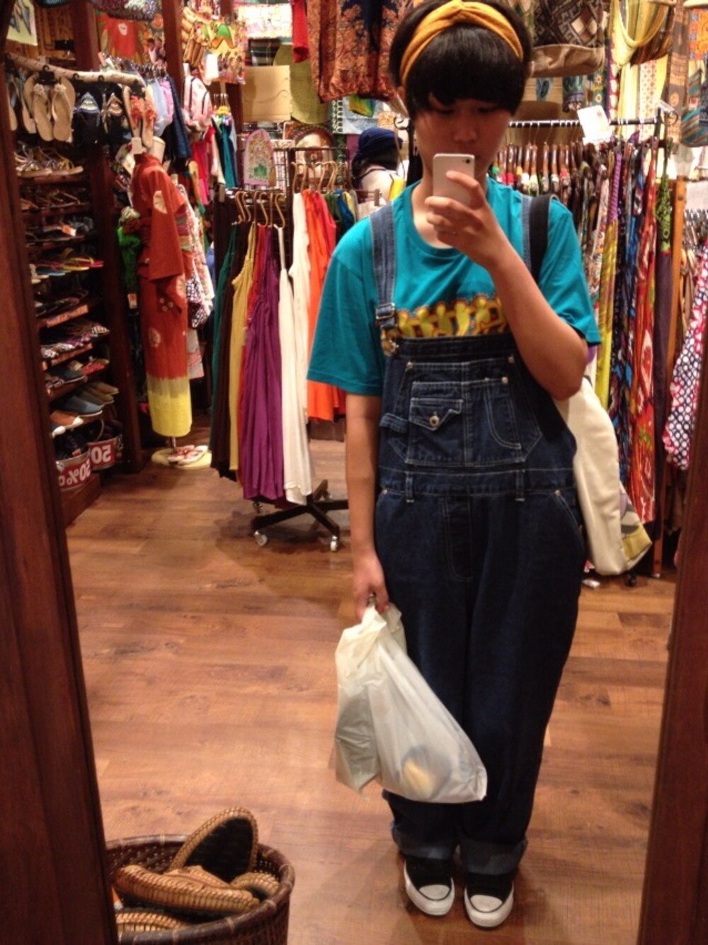 USEDのダボダボサロペットはWEGOです。 最近はメンズTシャツにハマってます( ^ω^ ) 買い物後なのでスーパーの袋...笑