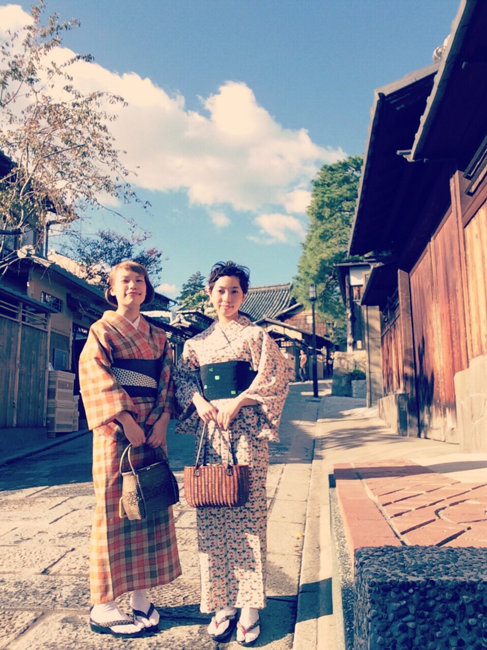 京都にきてます! アンティーク着物でうきうき。 ヘアはなんちゃってボブ。 たのしいです。