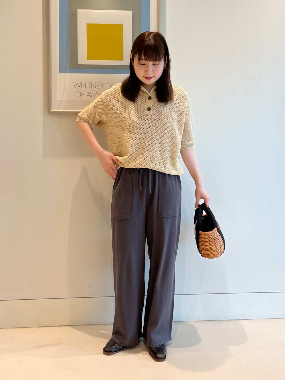 ニットポロをポイントにリラックス感のあるパンツと合わせてコーディネートしました♩