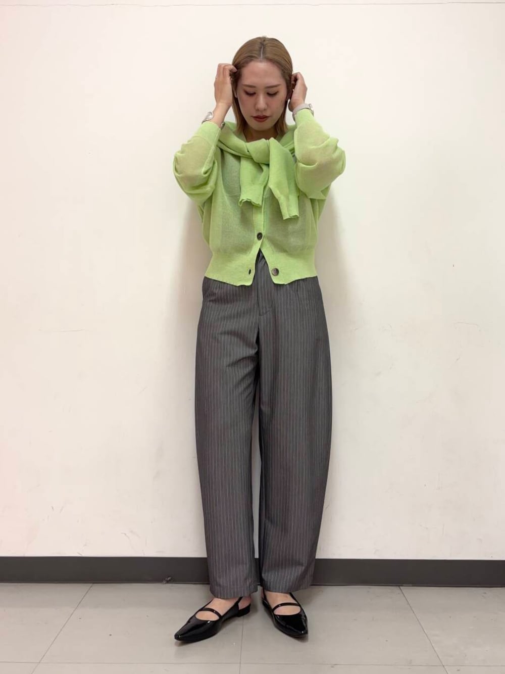 和(URBAN RESEARCH Store minamoa広島)のその他パンツ「『3サイズ展開』ストライプコクーンスラックス」を使ったコーディネート