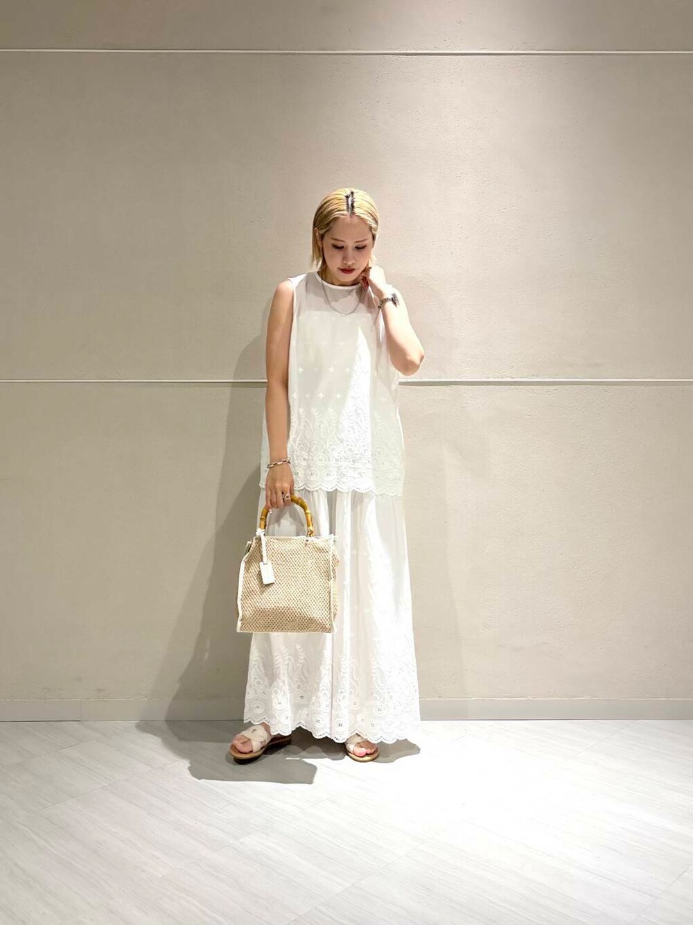 レースデザインがキレイなセットアップで コットン100%で柔らかくて涼しいです! 全体にレースが入っていますが甘くなく さりげないオシャレを楽しめます♪ オールホワイト憧れるので着てみました◎