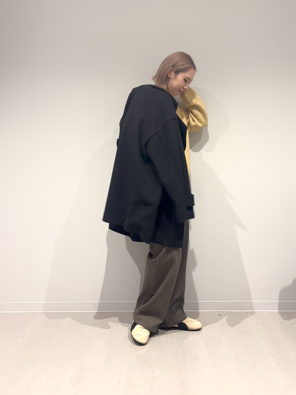 コートはリアルバイアイテムで今1番出番の多いアウターです!お尻もすっぽり隠れる長さで 私はジャケットや厚めのニットを着ることが 多いですが余裕で羽織れます◎ ニットはハミルトンウールのふっくらとした 軽いニットです!肌馴染みの良いイエローで 1枚で主役になるニットです♪ パンツは本当に楽で裏起毛が暖かいです! ベイカーパンツですがミリタリーな雰囲気に ならず合わせやすい白とチャコールのご用意なので1度ぜひ履いてみて頂きたいです!!