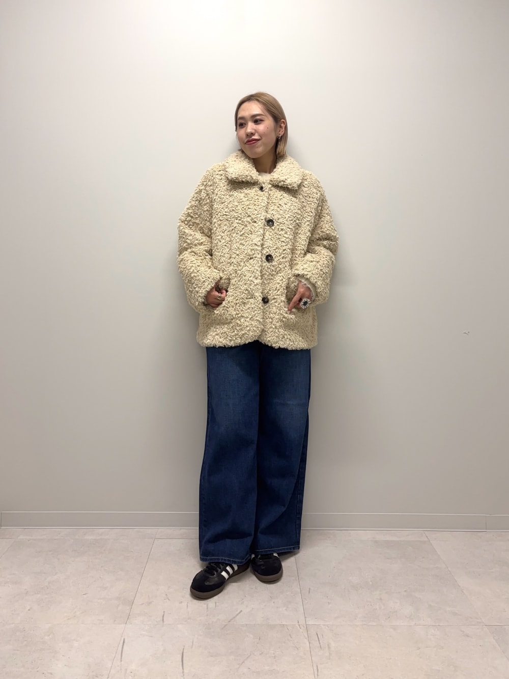 何度かご紹介しておりますアウターは 着ていて触りたくなるよう気持ち良さです! 見た目とは逆に軽くてゆとりもあるので中物を 選びません◎プードルのようなクルクルのファーが特徴的で前を閉めての着用もサマになります♪ デニムはLeeの別注ですが、こちらもかなり お買い得になっておりますので是非チェックしてみて下さい♡私はこちらのバギーシルエットが推しです♪