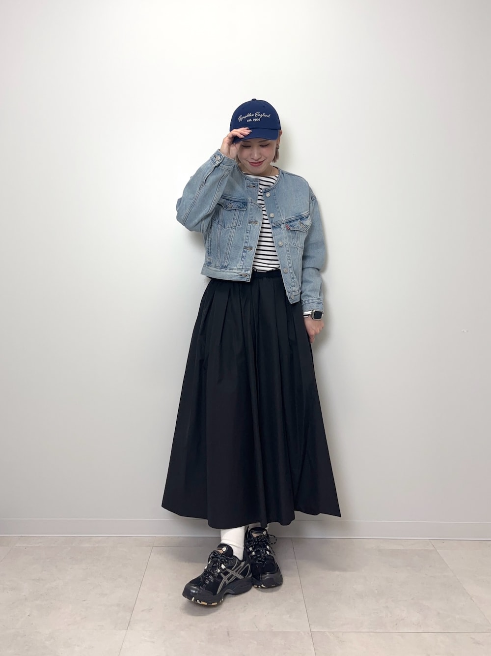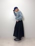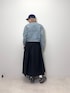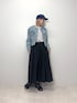 【デニムジャケット】 ショート丈のスッキリしたデニムジャケットです!ノーカラーでお顔周りはスッキリとしています◎薄めのヴィンテージ感のあるカラーもオシャレです♪ 【スカート】 軽やかですがハリのあるボリュームスカートです!ウエスト部分は総ゴムで締め付けがなくとても楽な履き心地です!たっぷりなギャザーが自然なボリューム感を出してくれるのでコーディネートにメリハリが付きます◎