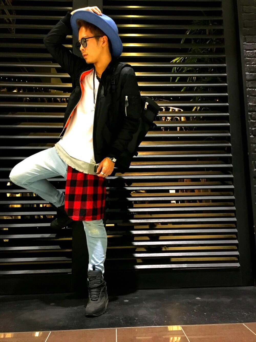 96のサングラス「WEGO/カラーレンズコンビサングラス」を使ったコーディネート