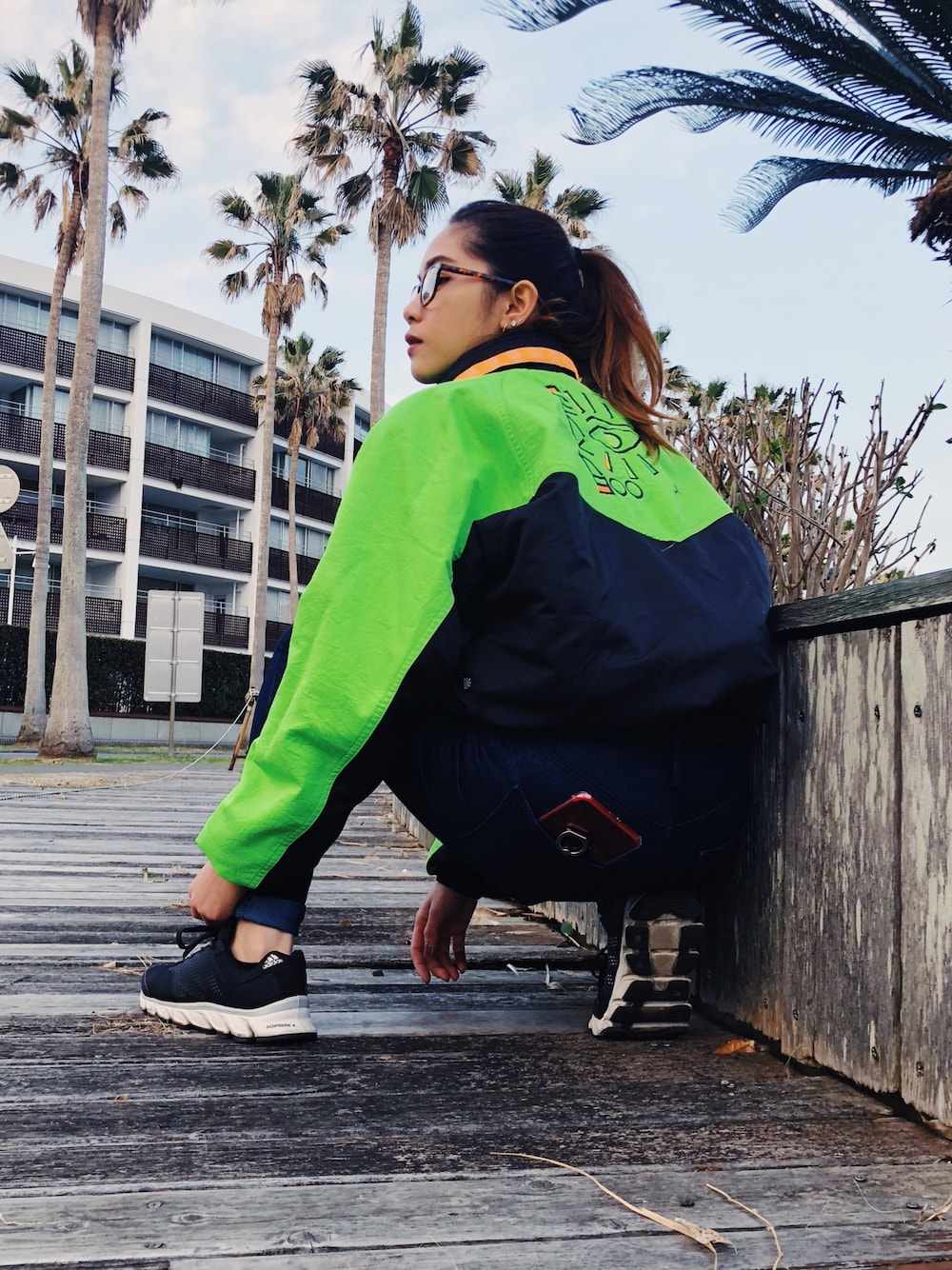 古着で見つけたジャケット 後ろが可愛くて即買い❤️ 足は小さすぎるので シューズはキッズの物です🤣🤣