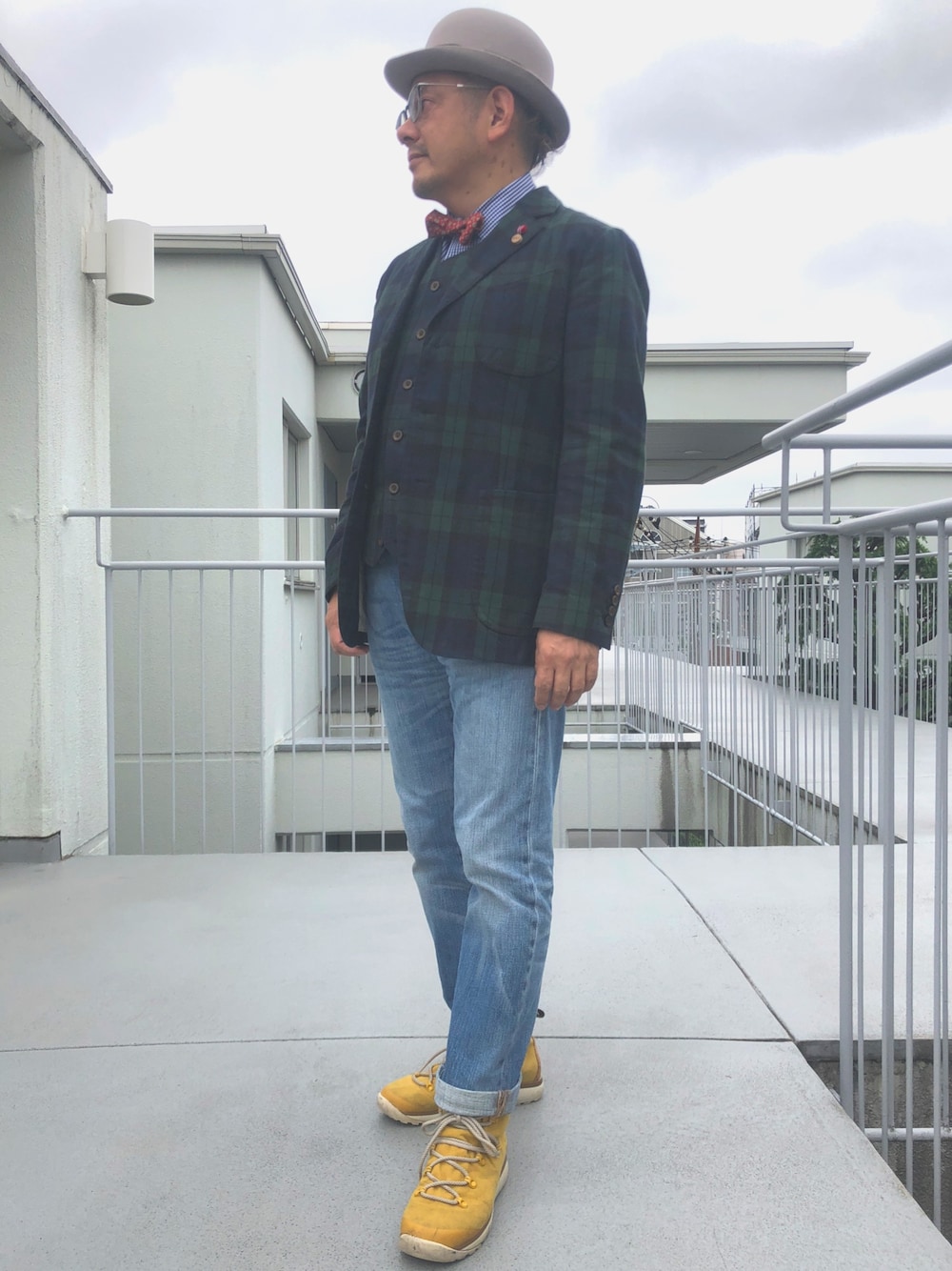 16℃曇後雨 16℃! 雨の日は黄色い長靴。 雨靴のバリエーション欲しいです… モールスキンのブラック・ウォッチしまわないでよかった。 ボウタイあったかい。