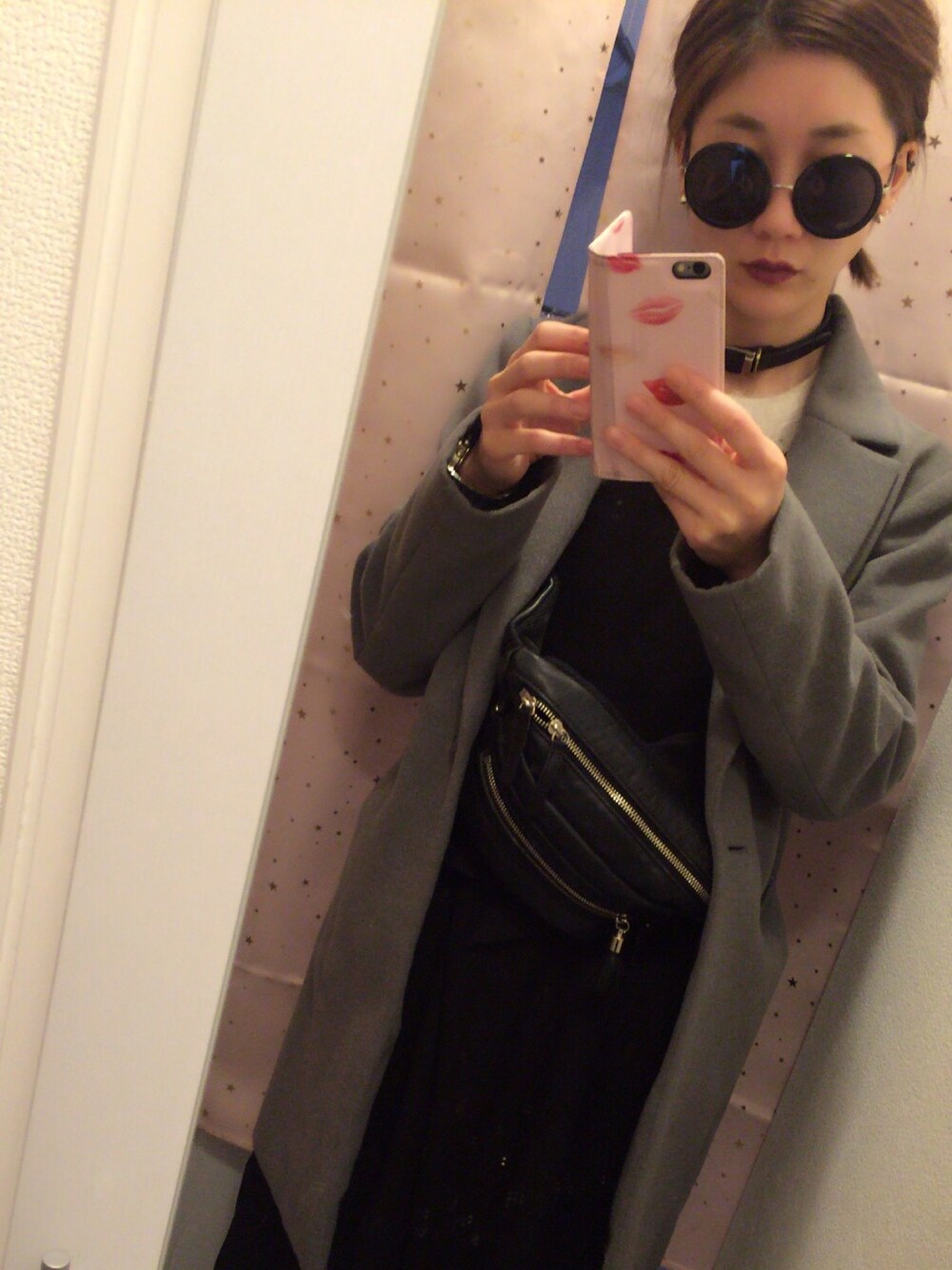 丸メガネに黒めなリップがつけたかったの