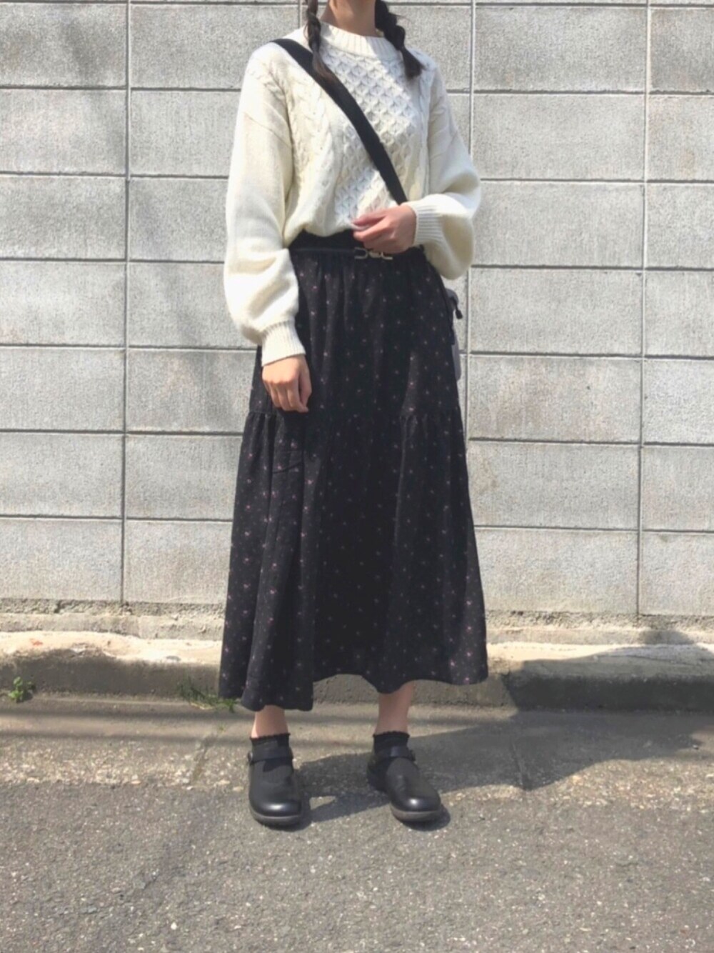 ねこのスカート「・花柄ティアードスカート ●」を使ったコーディネート