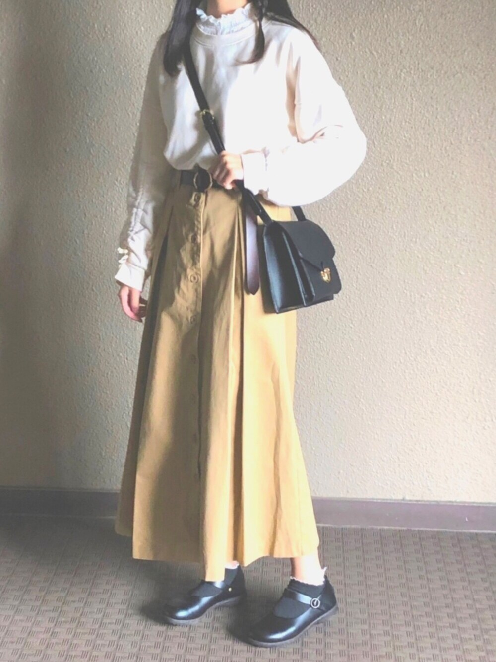 ねこのスカート「フロントボタンロングスカート1126」を使ったコーディネート