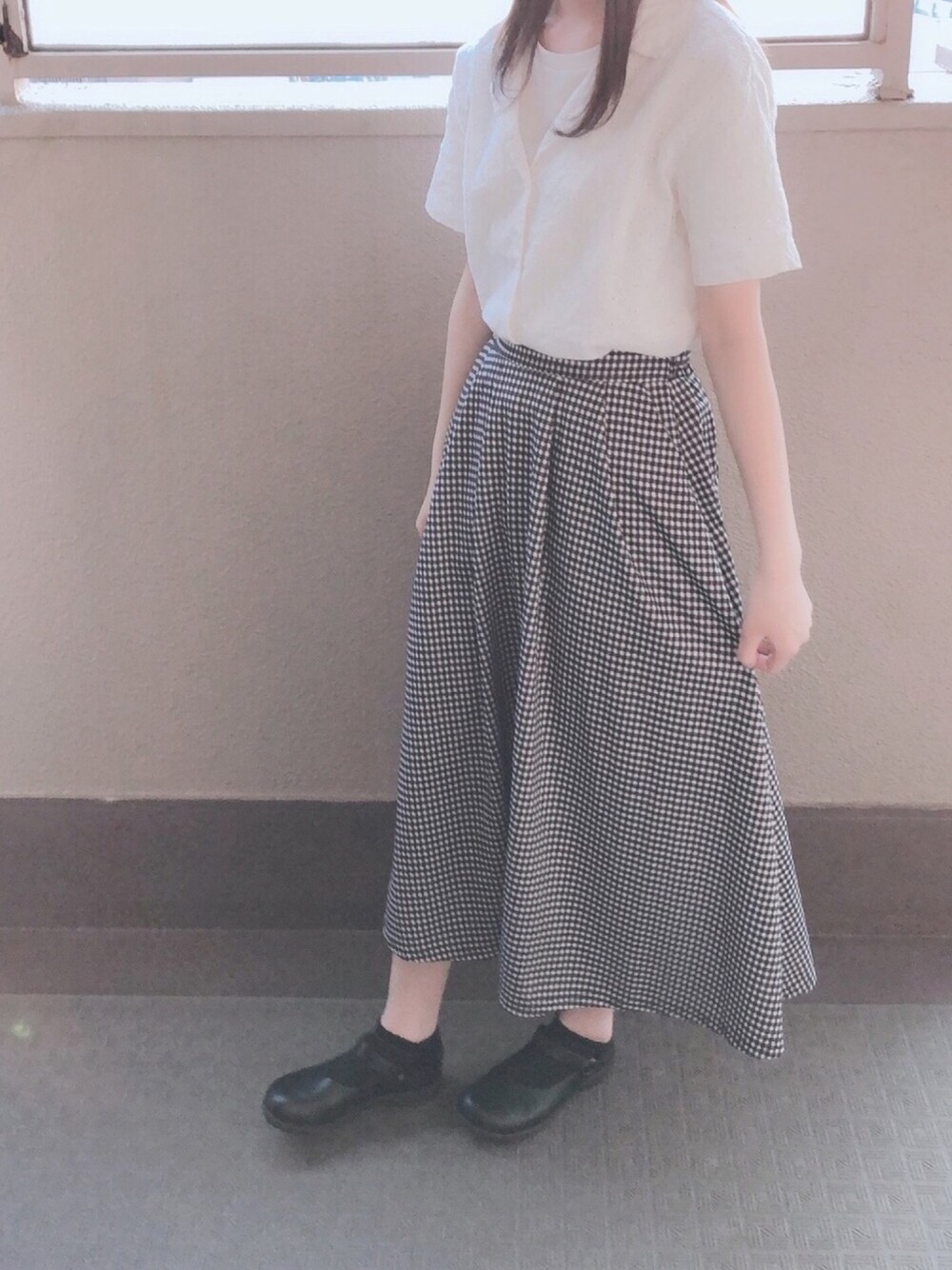 ナチュラルで女の子らしいコーデにしてみました🐼 スカートが夏でも涼しい生地で良いです😊✨