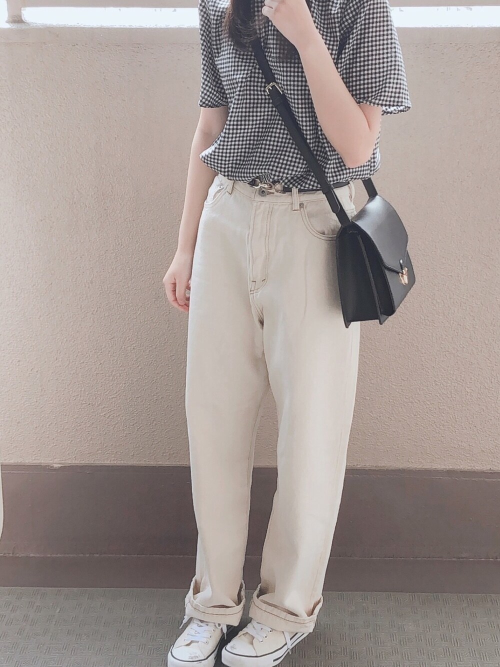 ねこのショルダーバッグ「バイカラーショルダーバッグ」を使ったコーディネート