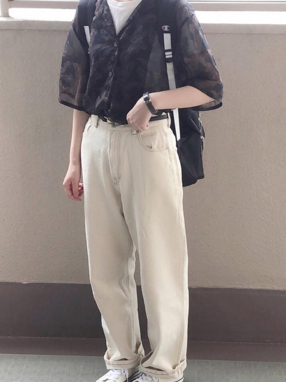 ねこのデニムパンツ「ハイウエストストレートデニム」を使ったコーディネート
