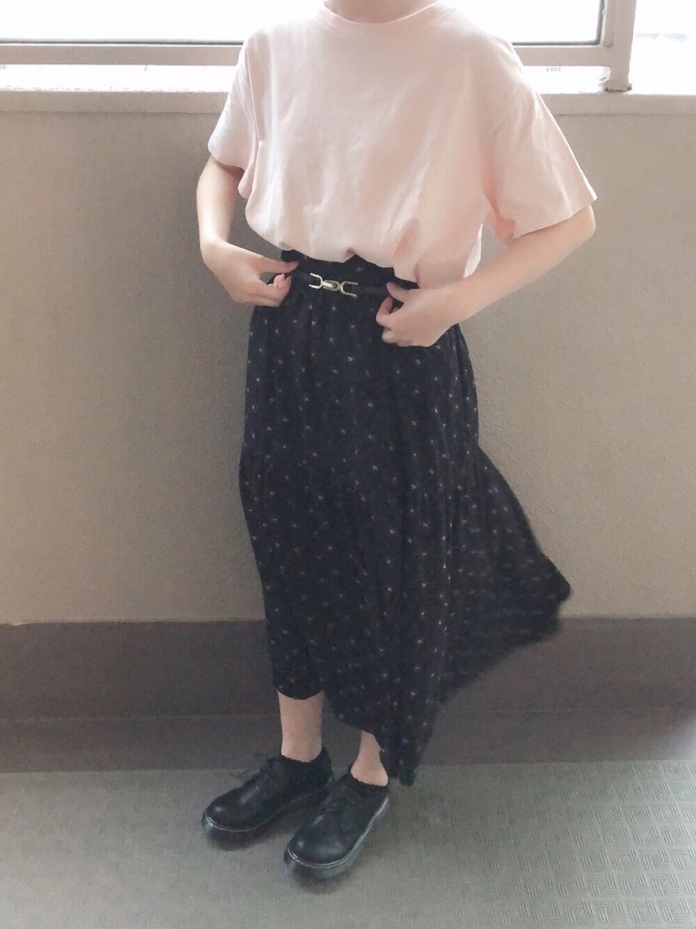 ねこのスカート「・花柄ティアードスカート ●」を使ったコーディネート