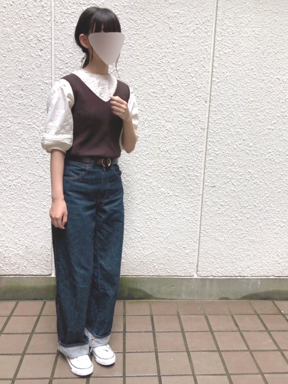 GUのニットをブラウスと合わせてベストみたいに着てみました🐻 ベスト(ほんとはニット)を初めて着てみたのですが、こんなかんじでいいんでしょうか🧐