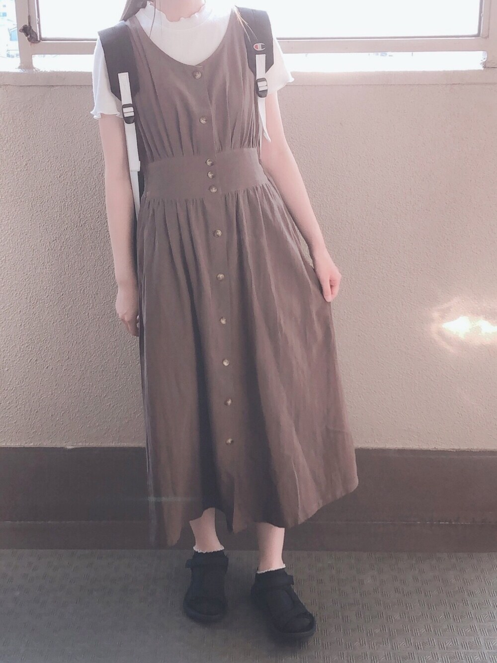 ねこのワンピース「ノースリ前開きワンピース」を使ったコーディネート