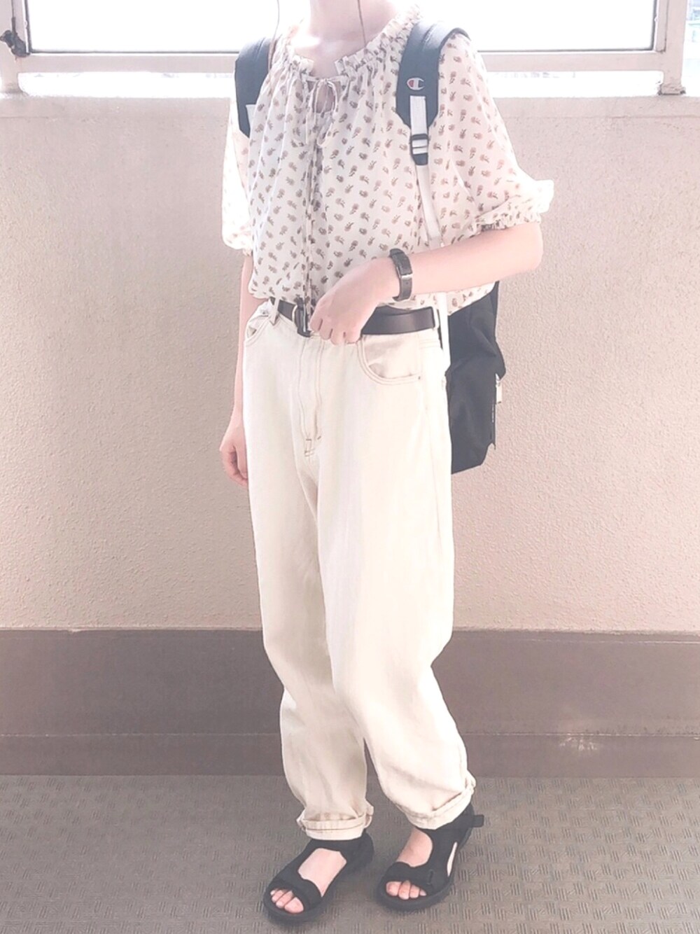 ナチュラルで女の子らしいかんじにしてみました🐰 最近はかわいいコーデにカジュアルなリュックや靴を合わせるのにはまっています😊